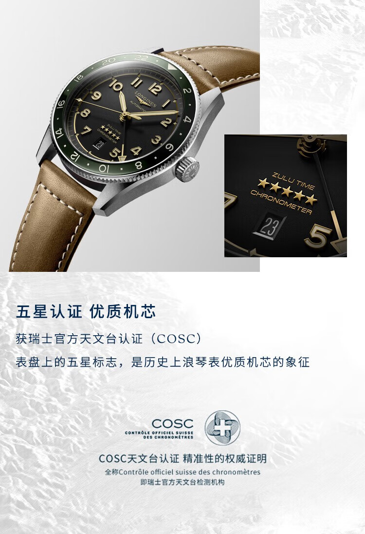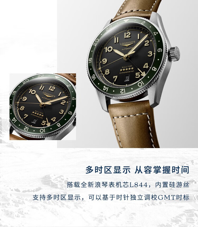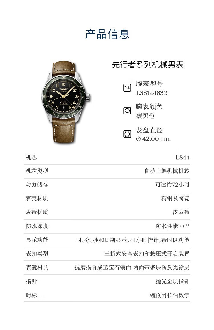 浪琴(LONGINES)先行者系列祖鲁时间 机械皮带男表L3.812.4.63.2 单位:块 黑色