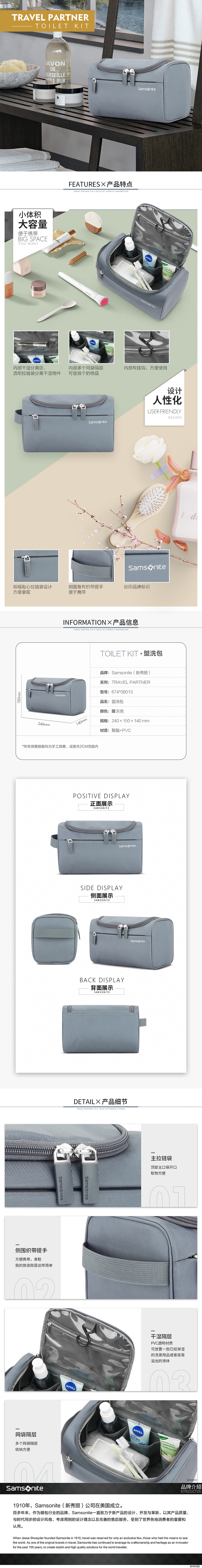 新秀丽收纳袋灰色240*150*140mm674*08013 单位:个 灰色