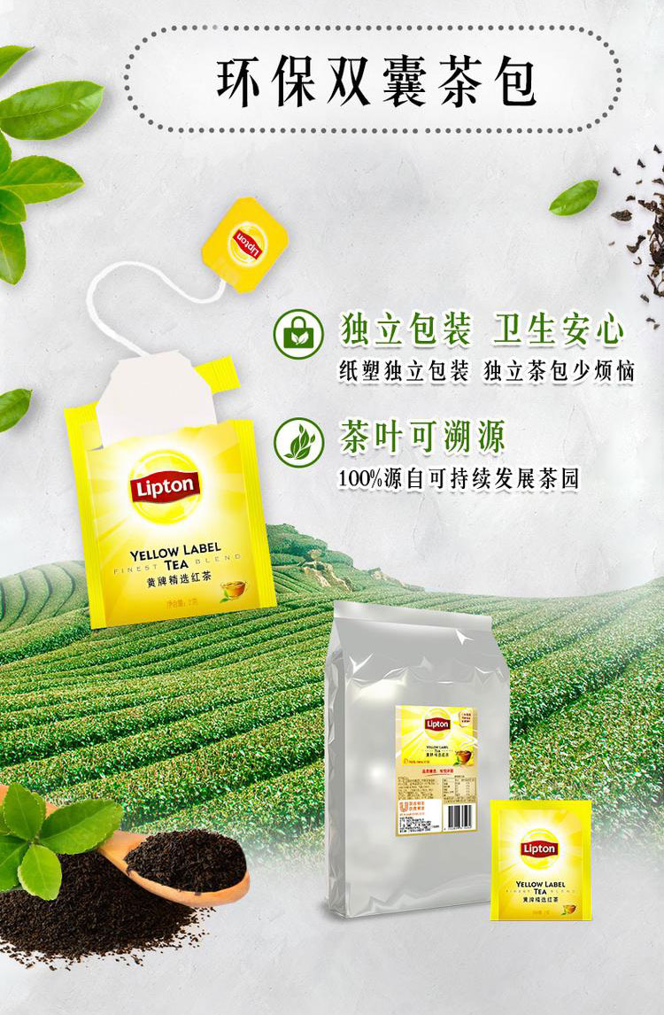 立顿 黄牌精选红茶纸包装E80 2g*80袋/包(独立小包装) 鹅仔黄