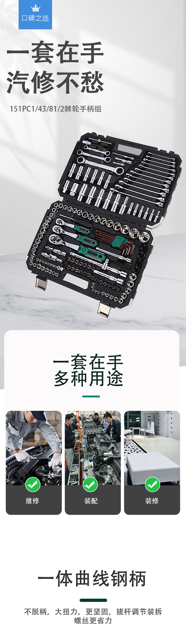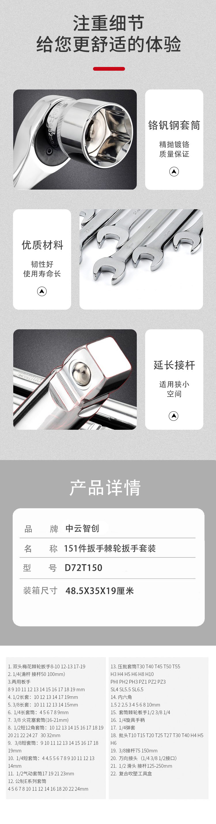 中云智创 151件扳手棘轮扳手套装组合汽修工具套装组套 随车五金工具箱/1箱 不锈钢色