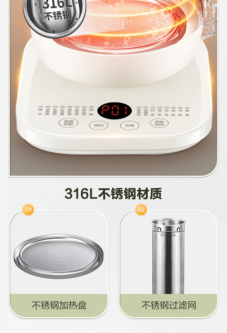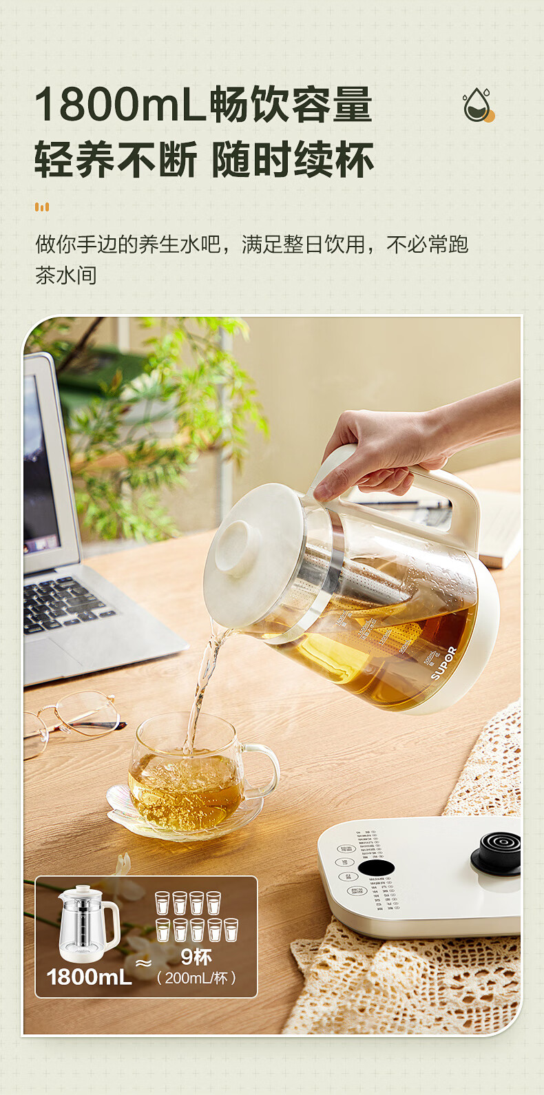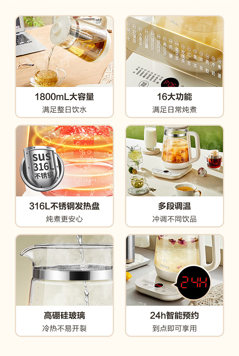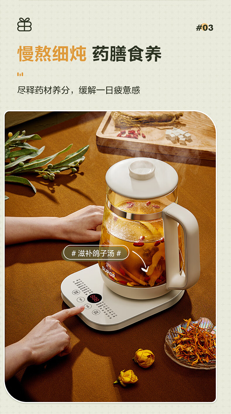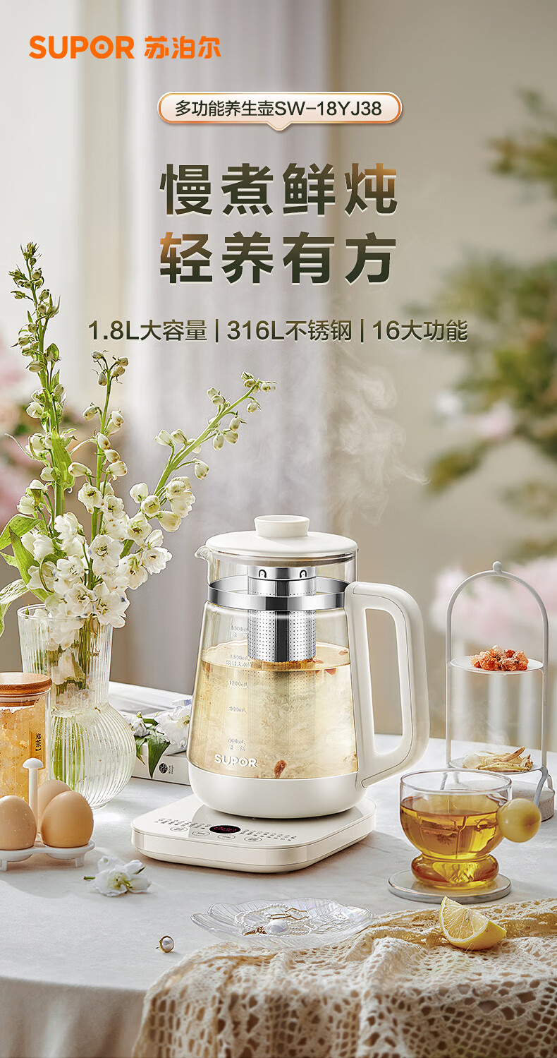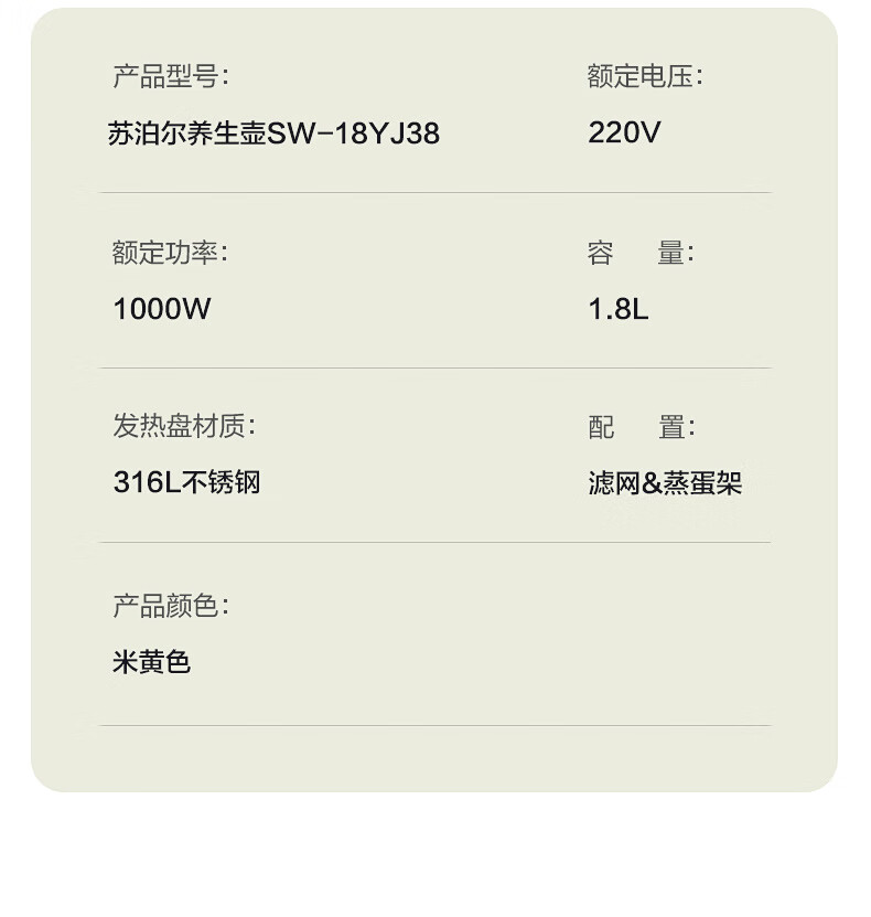 苏泊尔(SUPOR) 养生壶带滤网 SW-18YJ38 1.8L 米黄(单位:台)