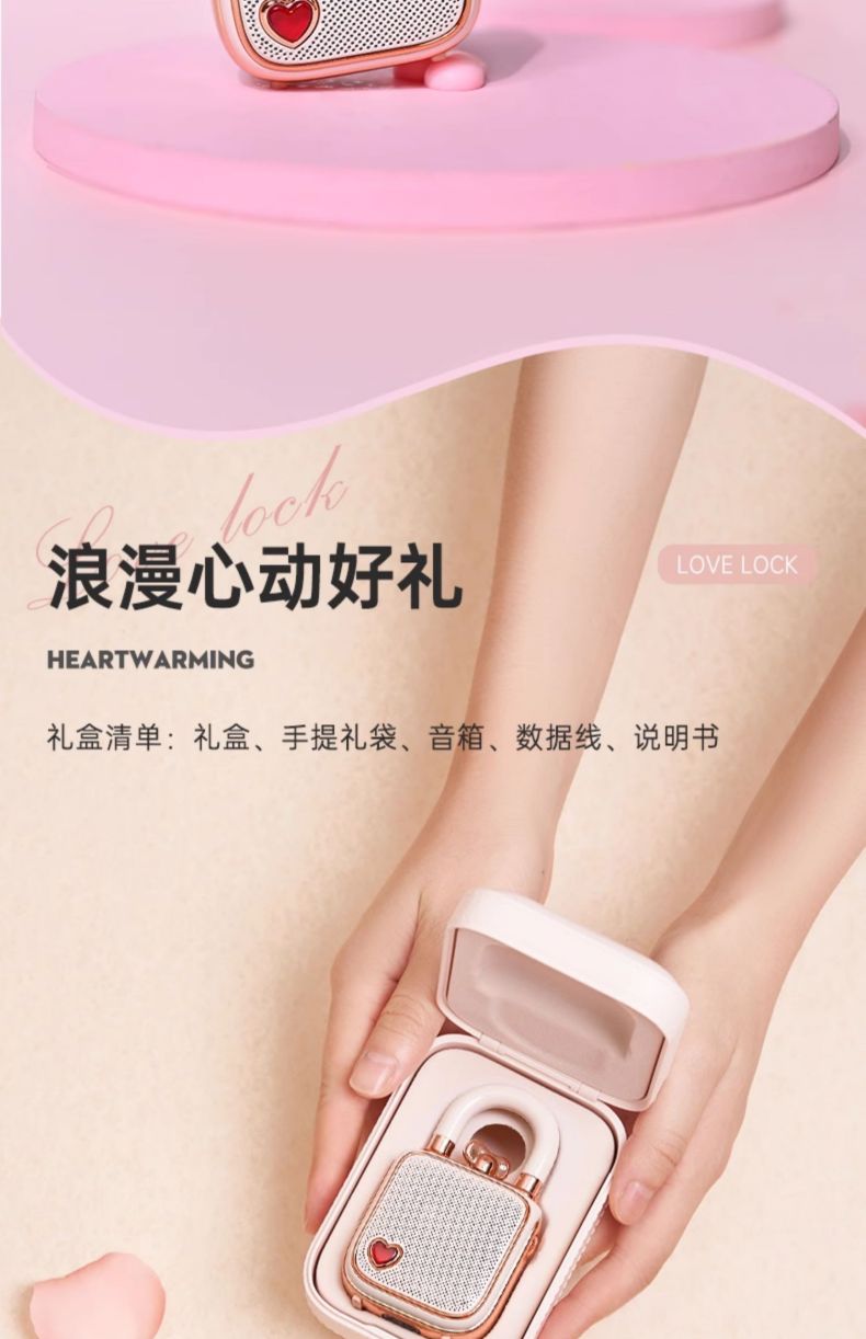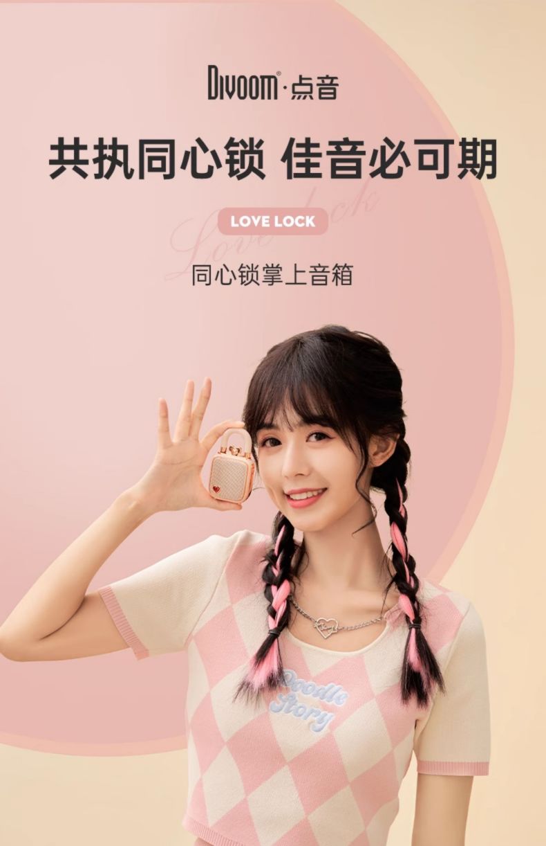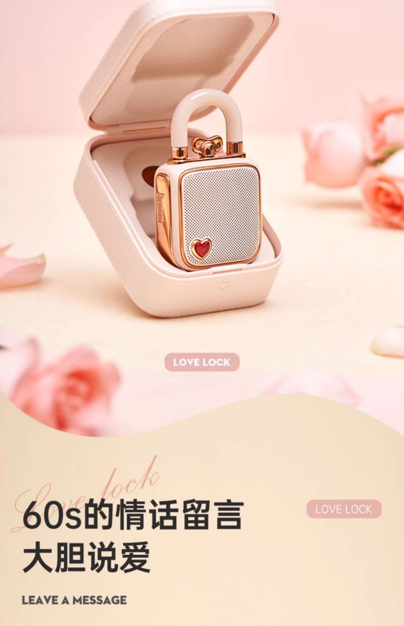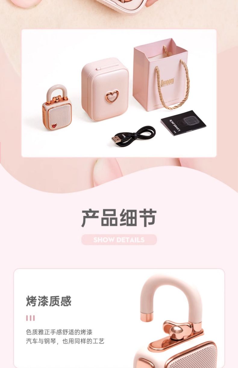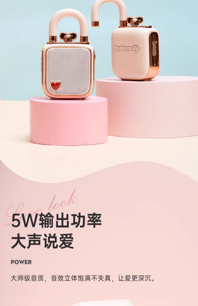 Divoom点音 同心锁家用桌面可爱小音响蓝牙音箱迷你户外便携无线低音炮复古实用留声机情侣女生生日礼 粉色