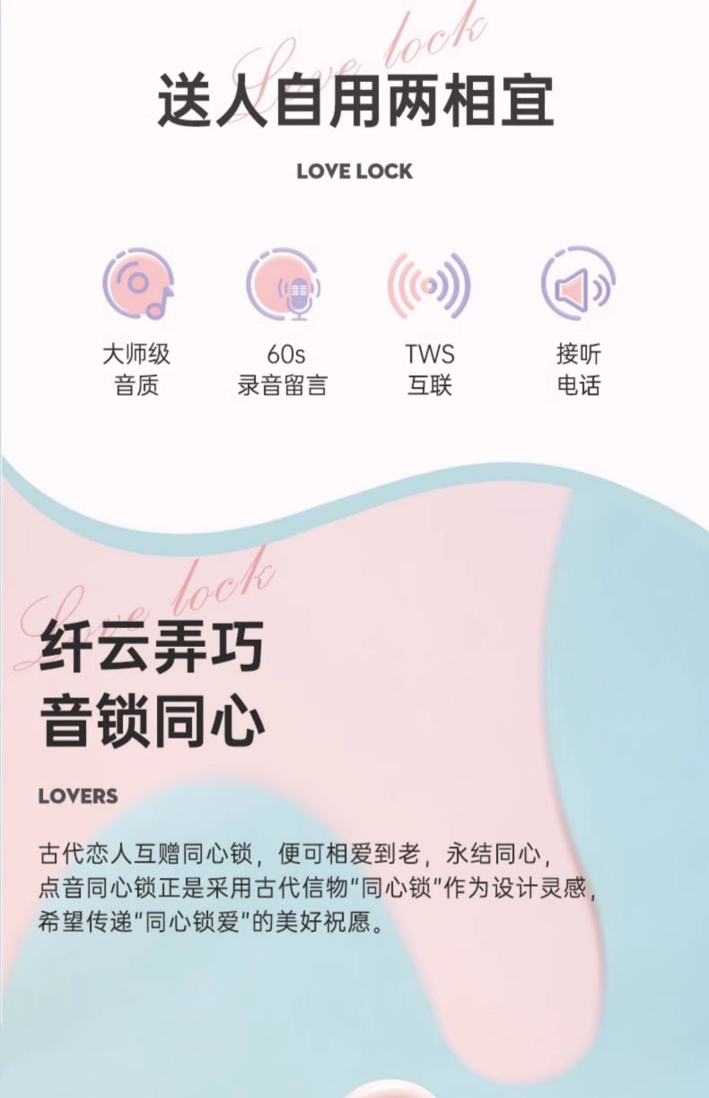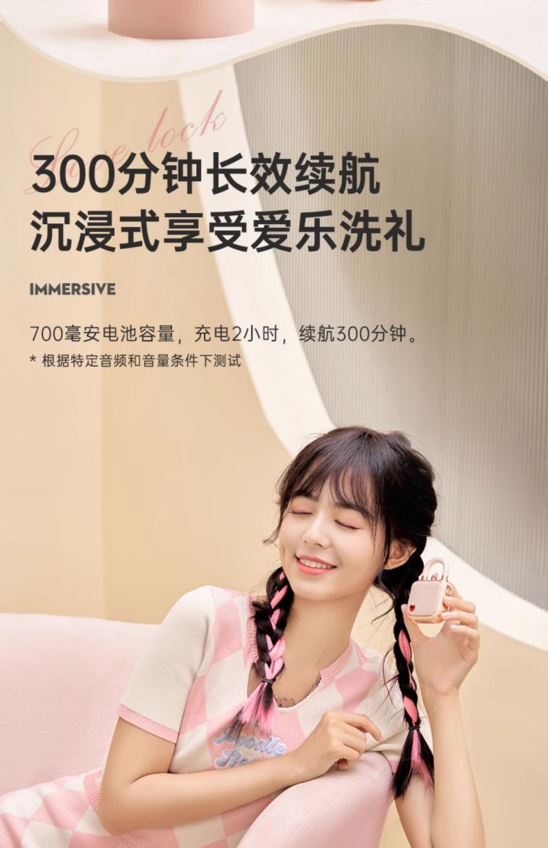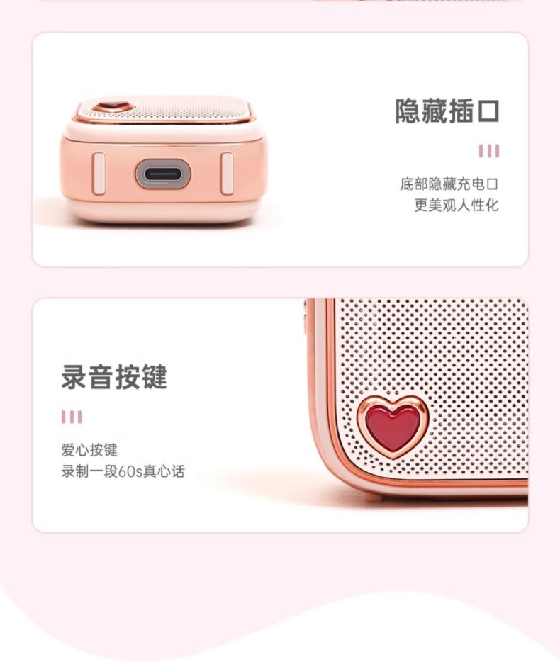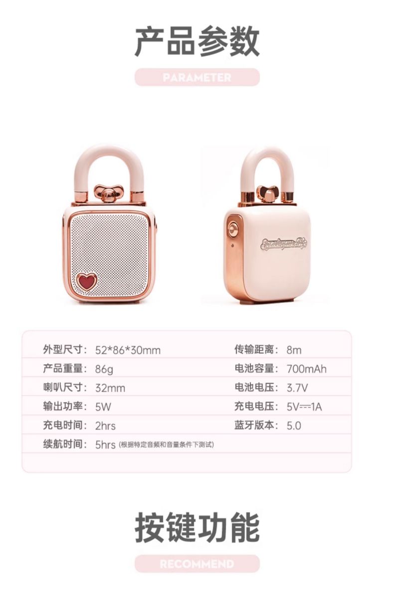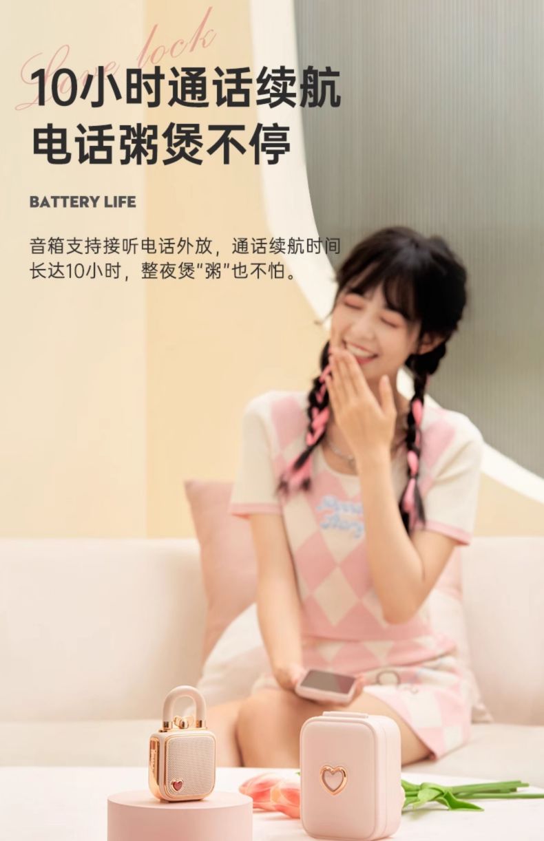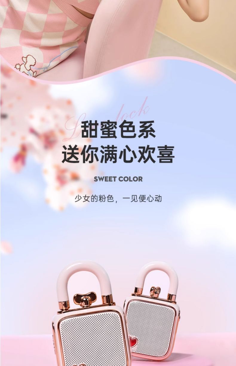 Divoom点音 同心锁家用桌面可爱小音响蓝牙音箱迷你户外便携无线低音炮复古实用留声机情侣女生生日礼 粉色