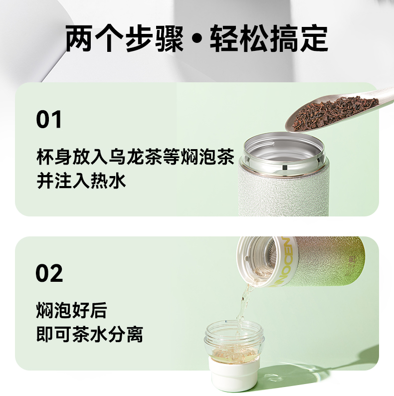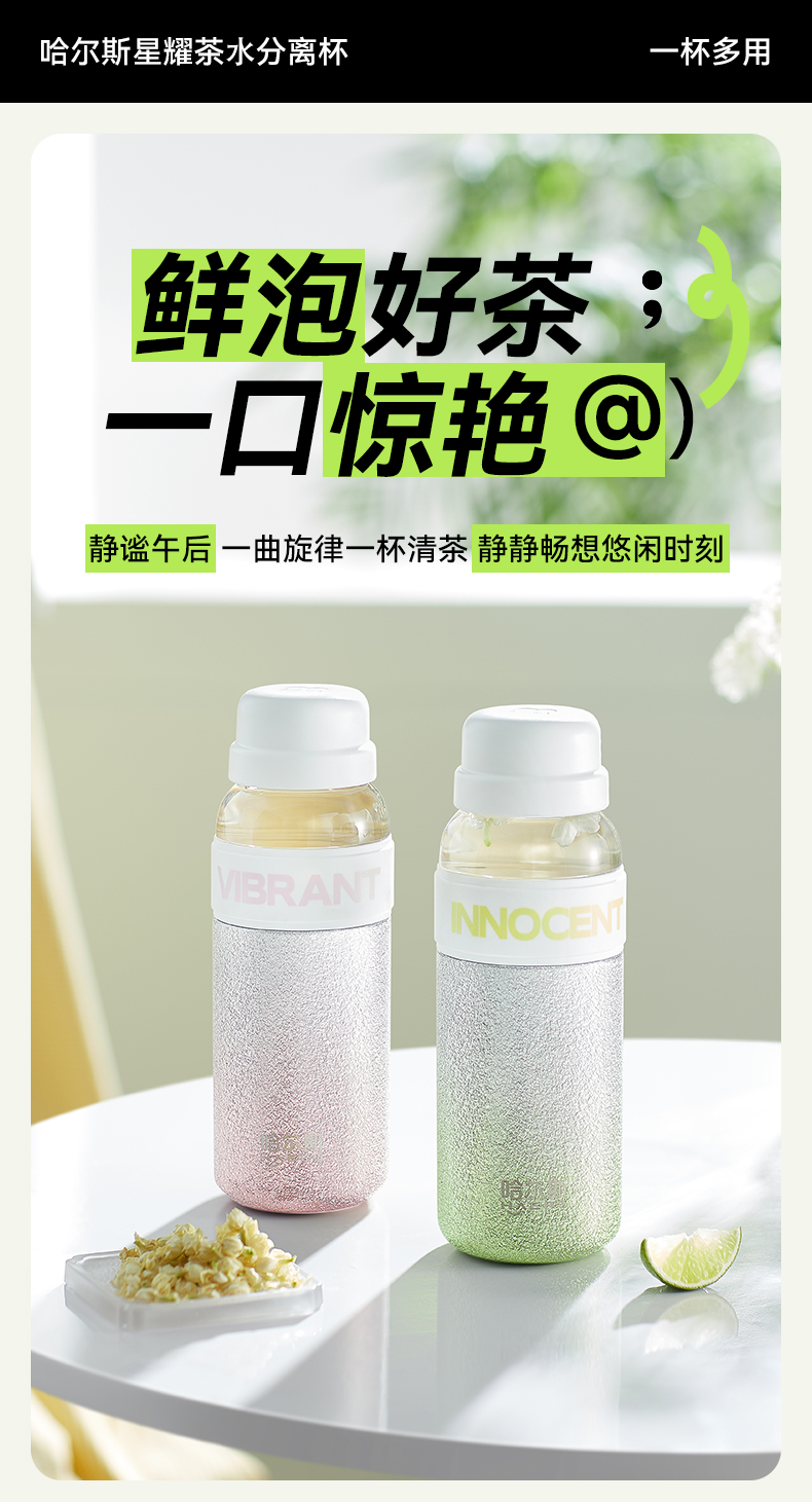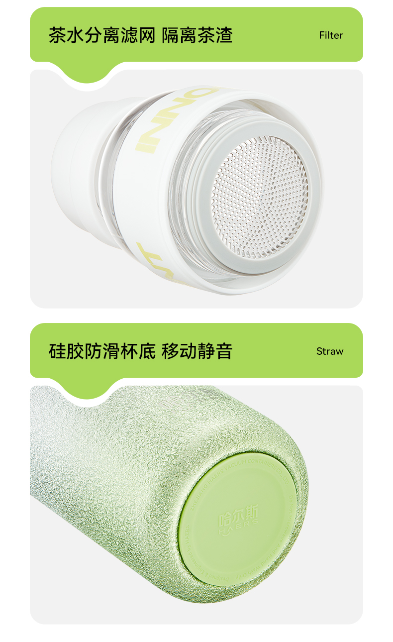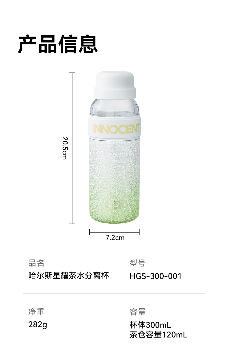 哈尔斯 星耀茶水分离杯300ml HGS-300-001(单位:个) 纯真绿