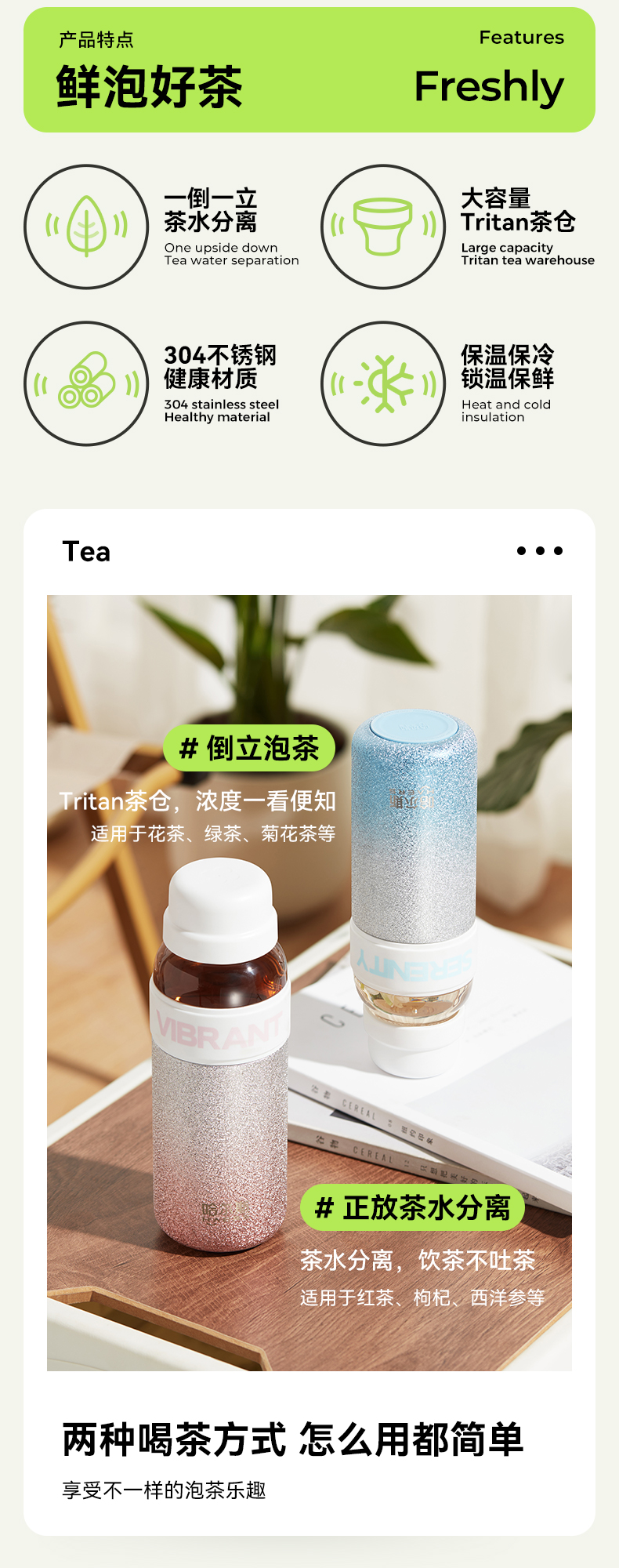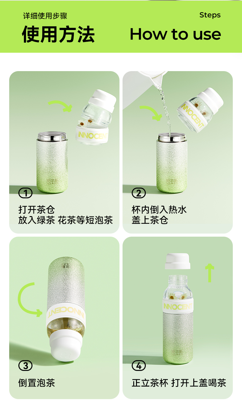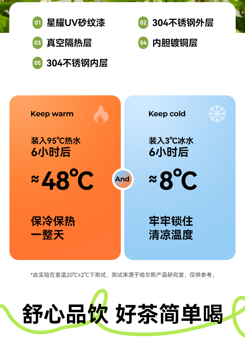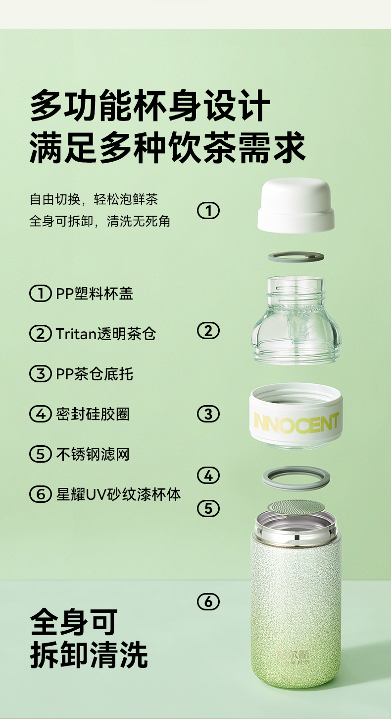 哈尔斯 星耀茶水分离杯300ml HGS-300-001(单位:个) 纯真绿