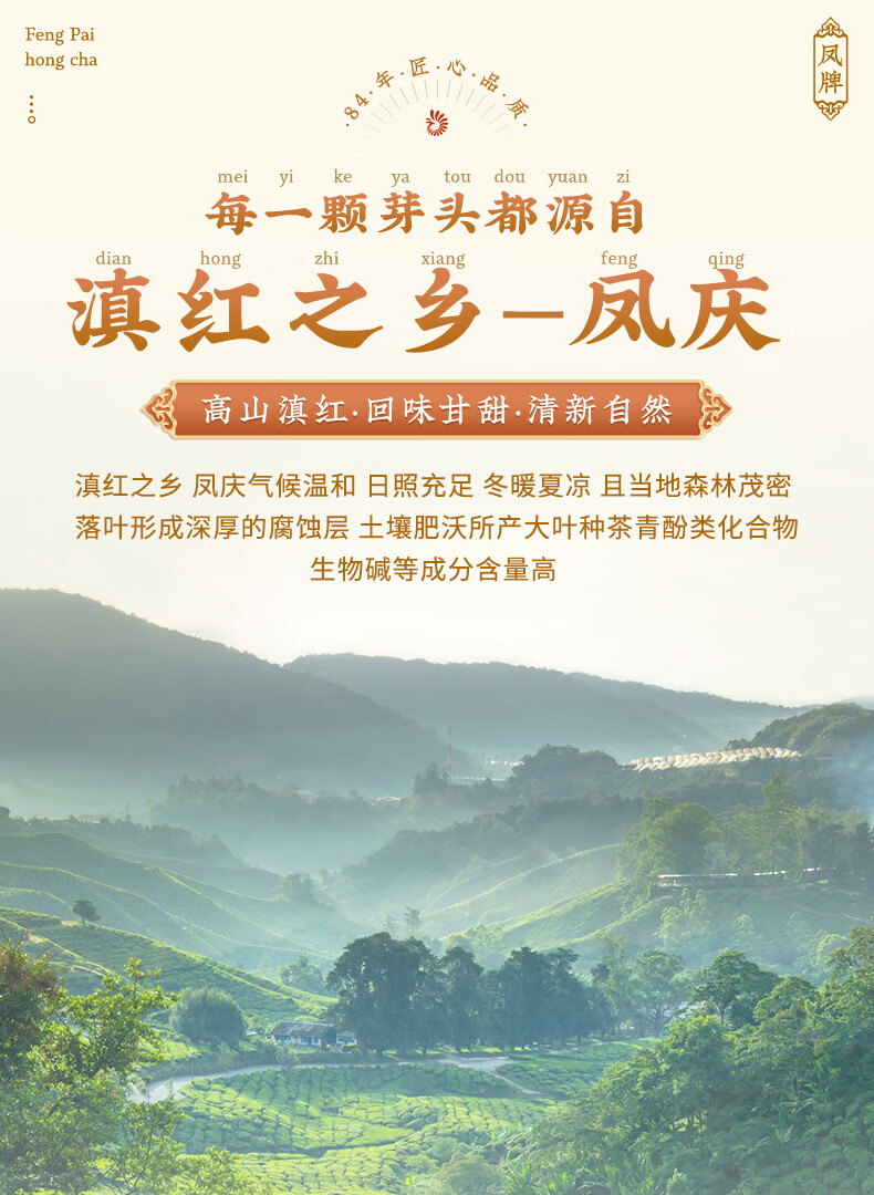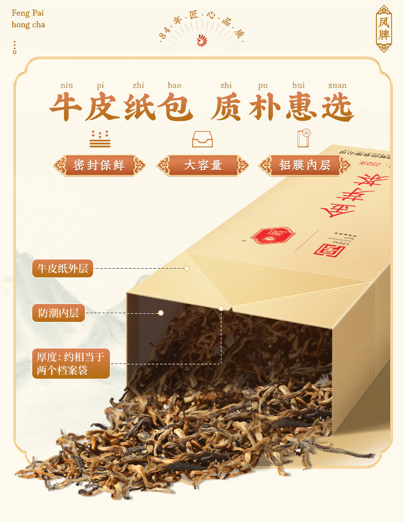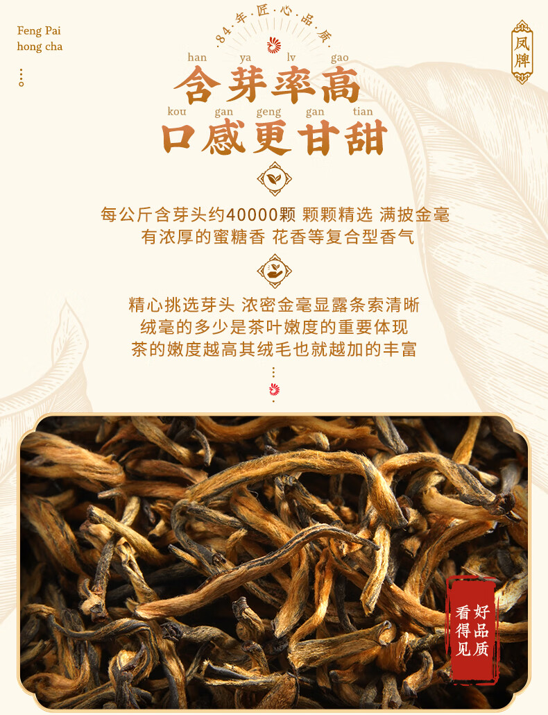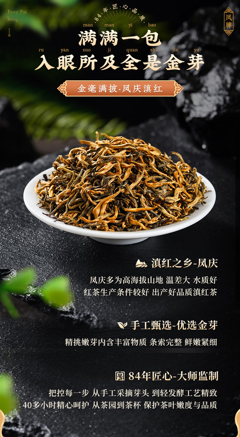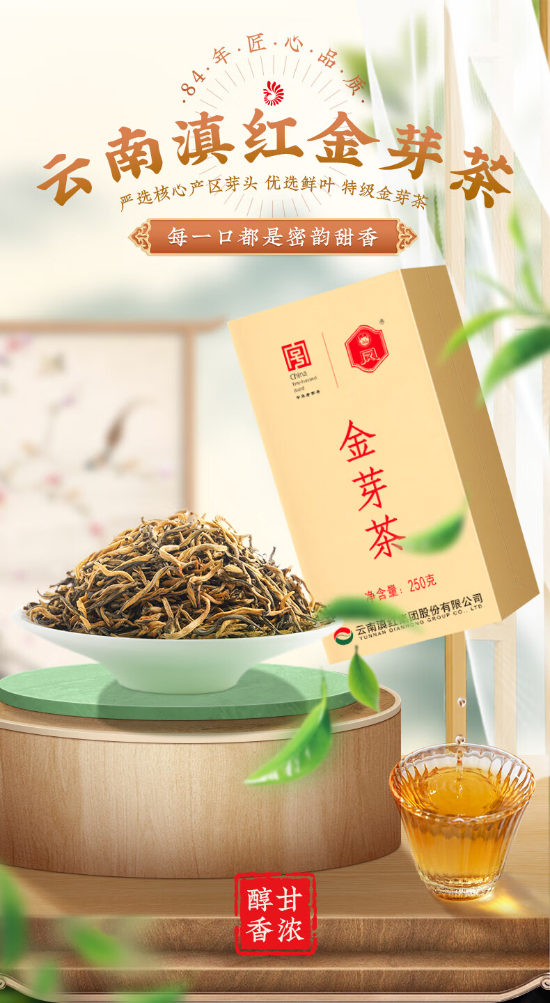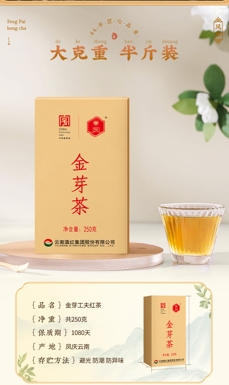 凤牌 金丝滇红金芽茶叶 中华老字号特级蜜香型红茶 250g 金芽茶叶