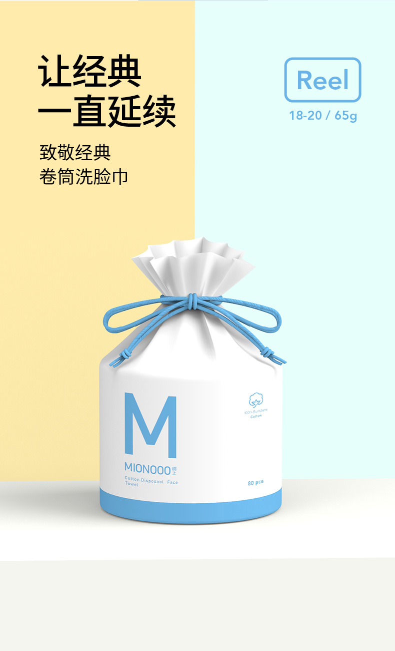 棉上卷筒式洗脸巾一次性纯棉女全棉面巾加厚棉柔巾80抽/卷*3卷 白色