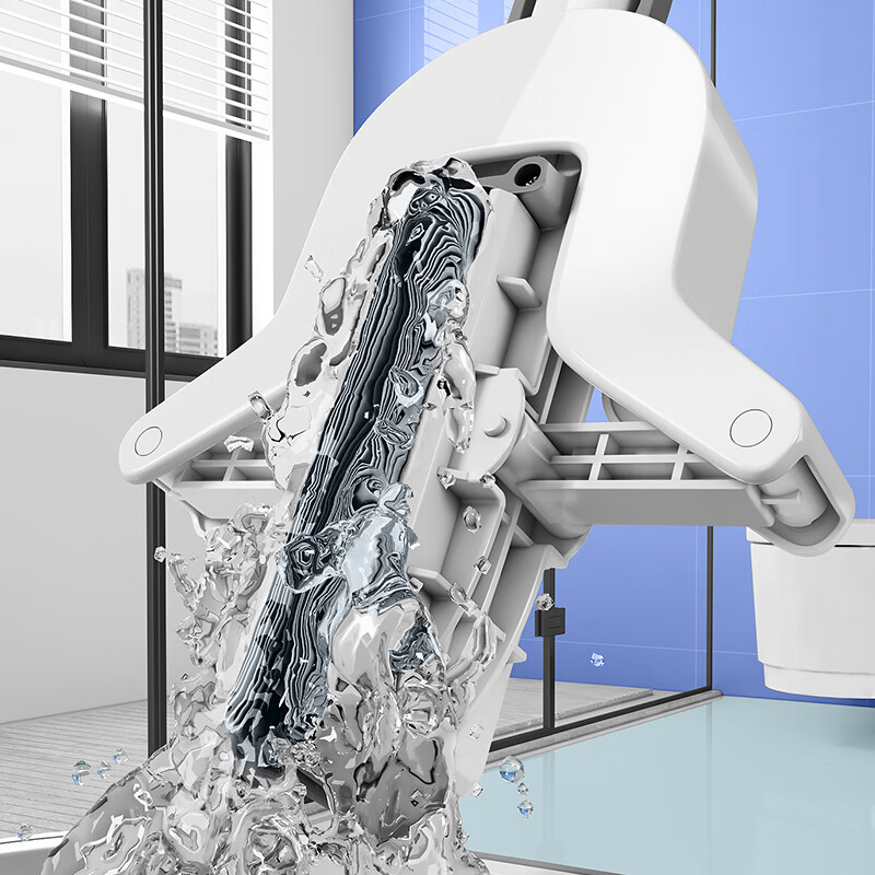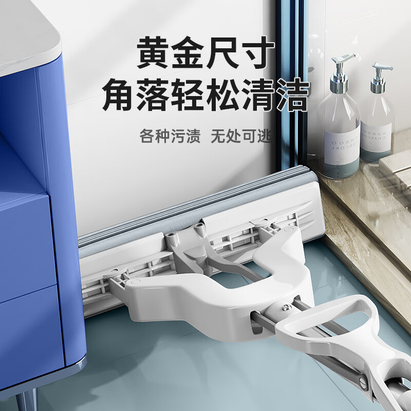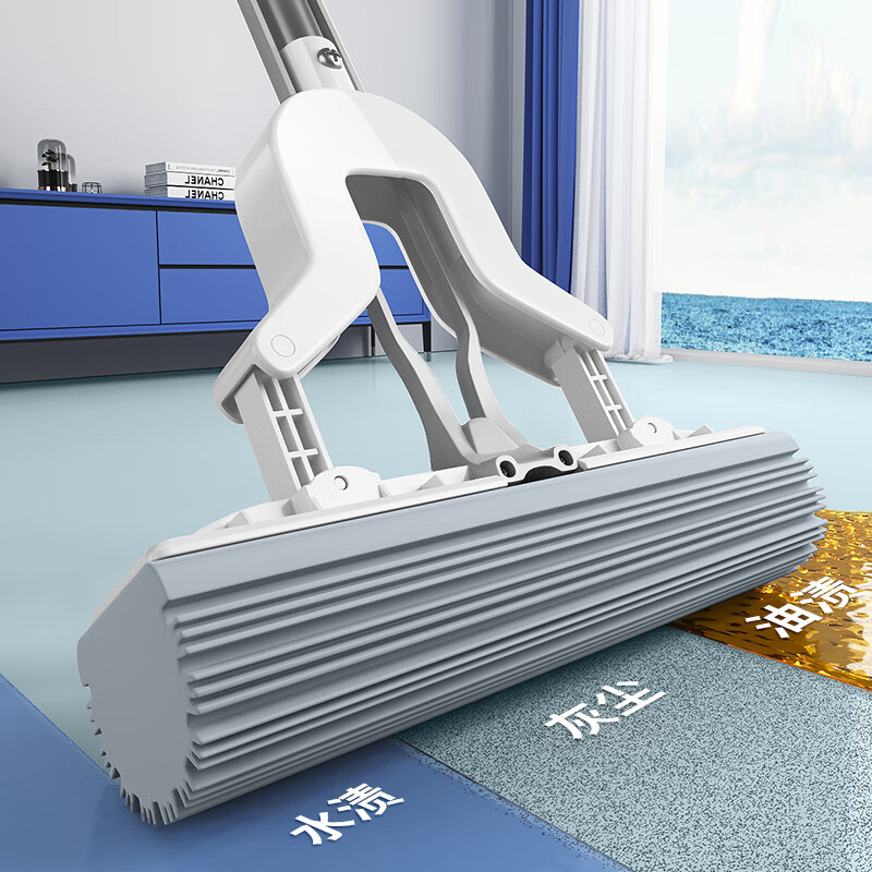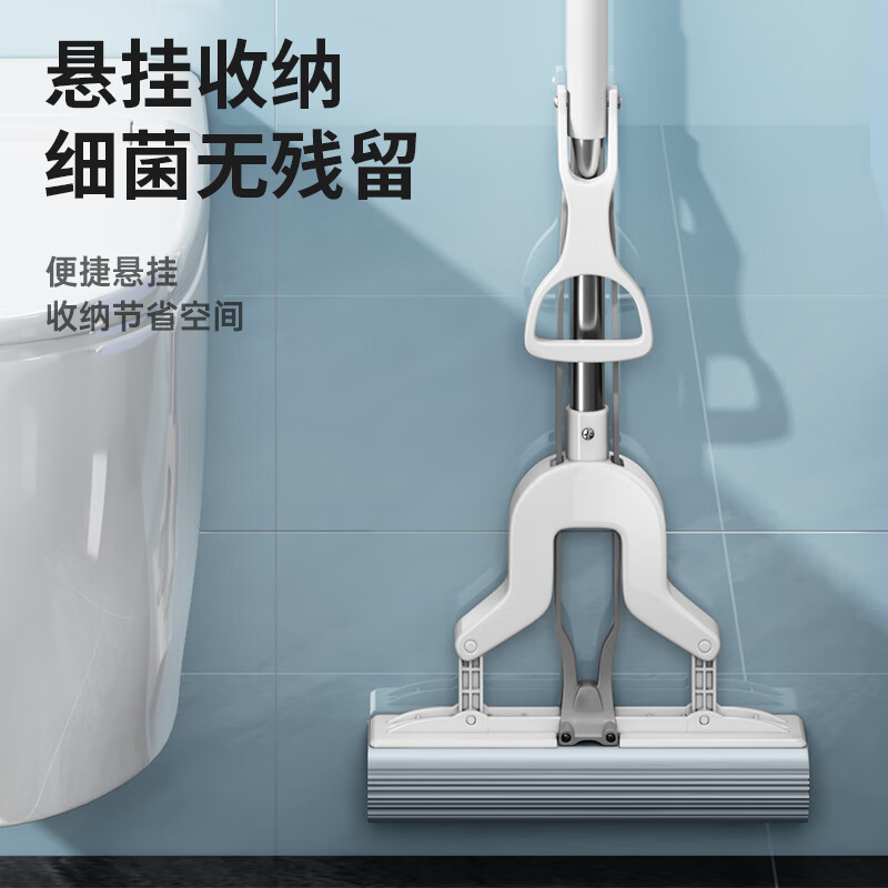 尔蓝 对折胶棉拖把 吸水海绵拖布免手洗懒人墩布家用干湿两用 AL-JM06(单位:套) 钢琴白