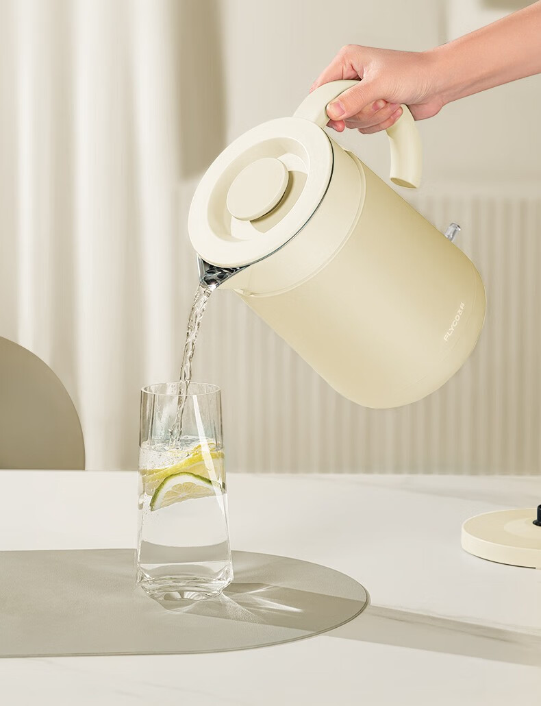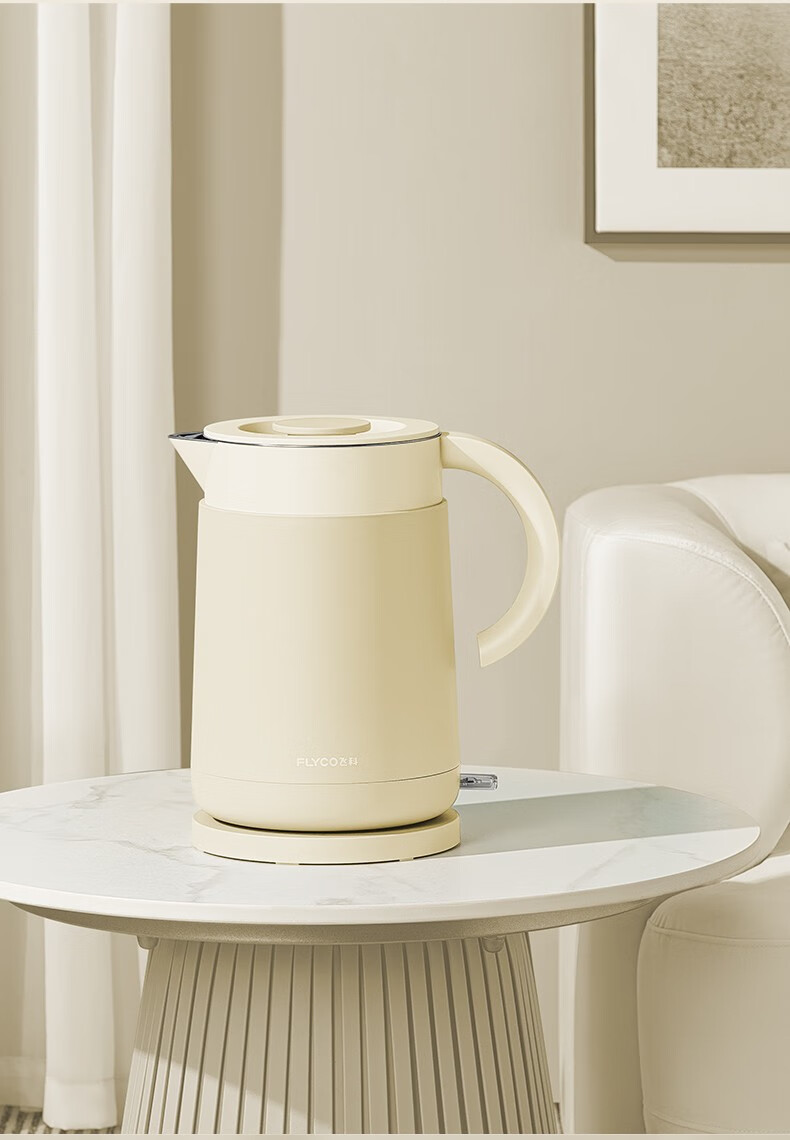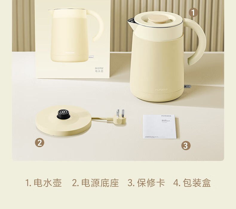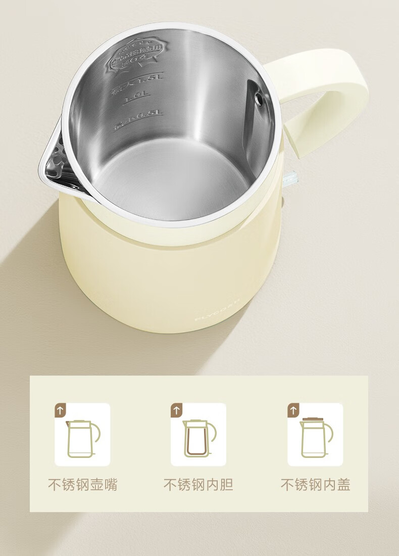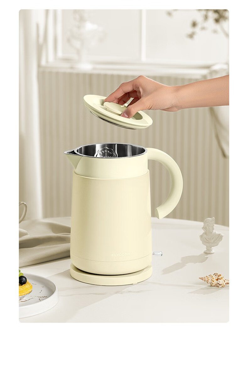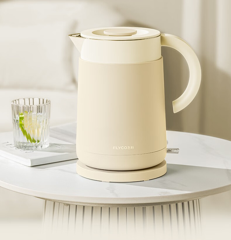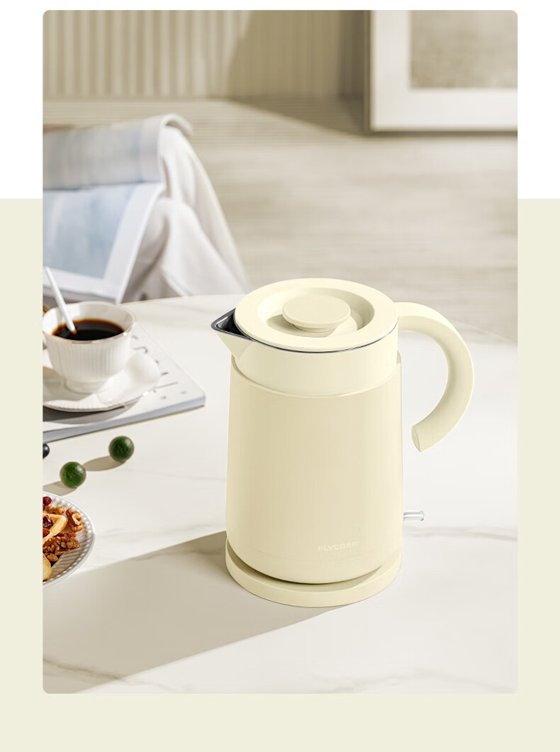 飞科(FLYCO)EK3701电热水壶 食品级304不锈钢 1.5L容量双层防烫烧水壶 单位:个 野卖黄
