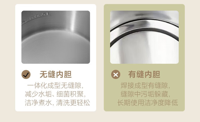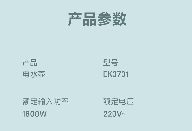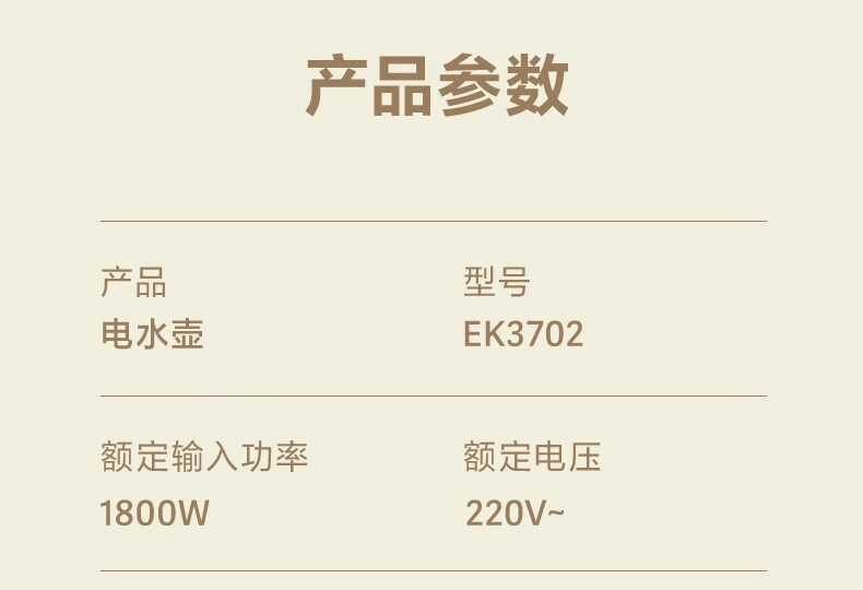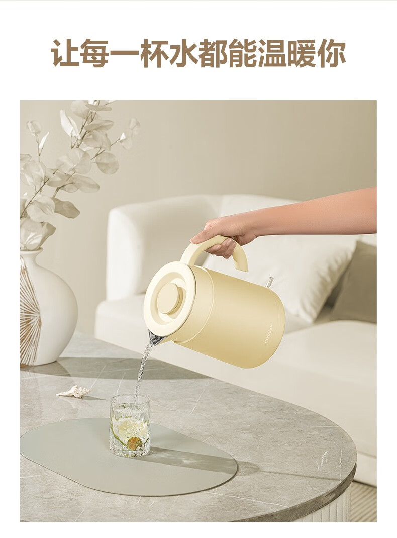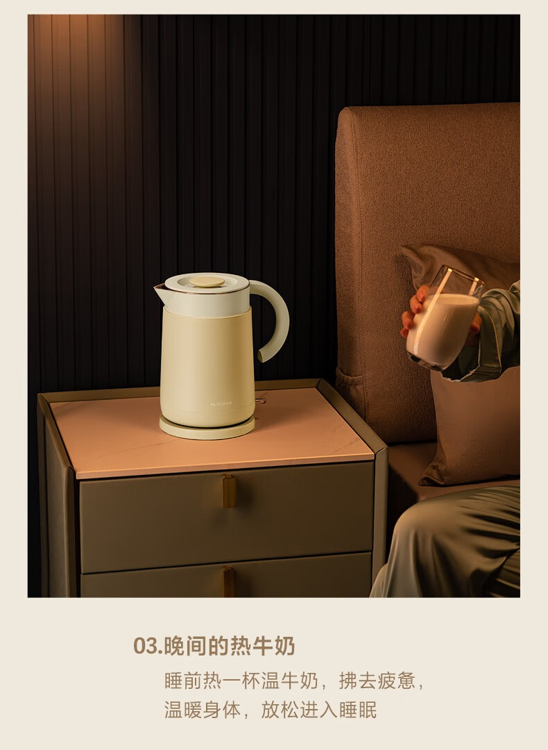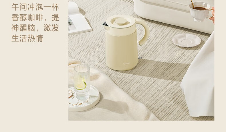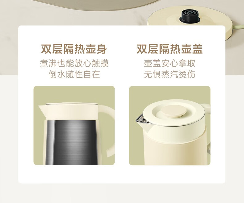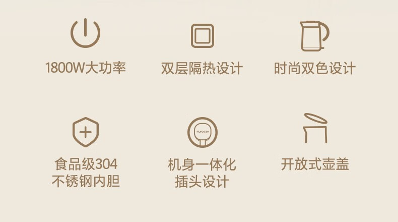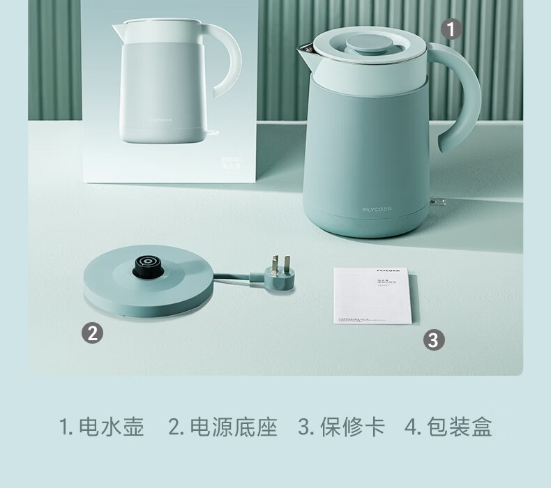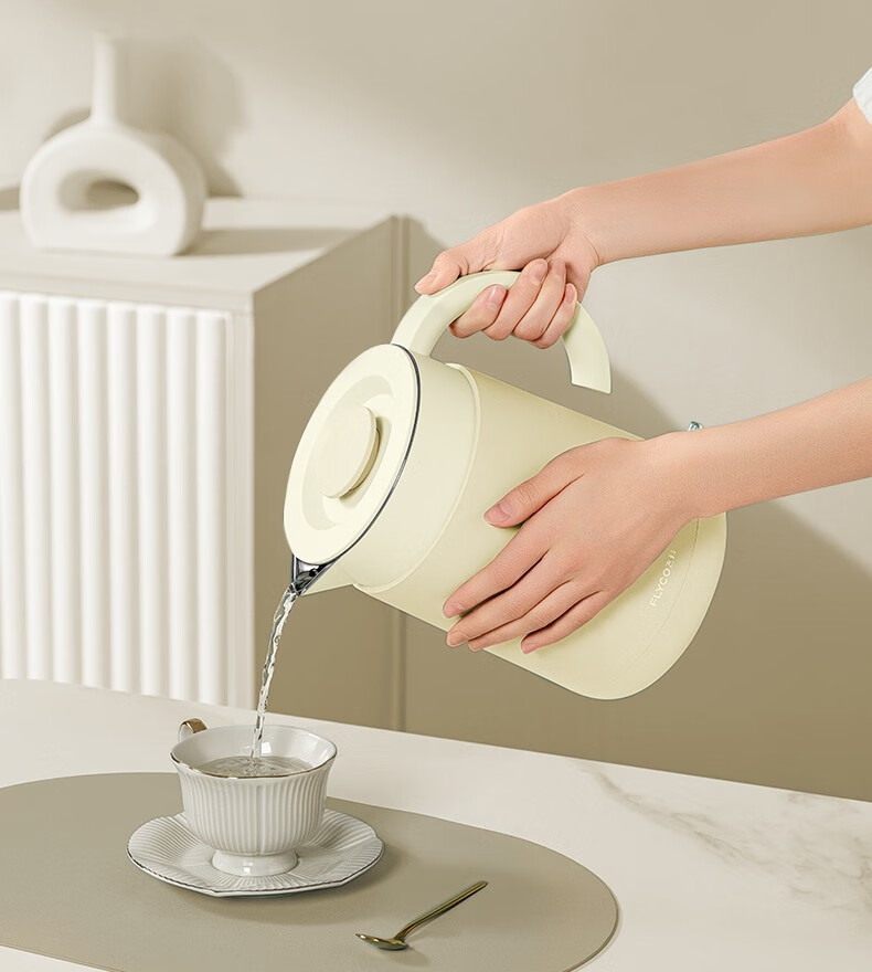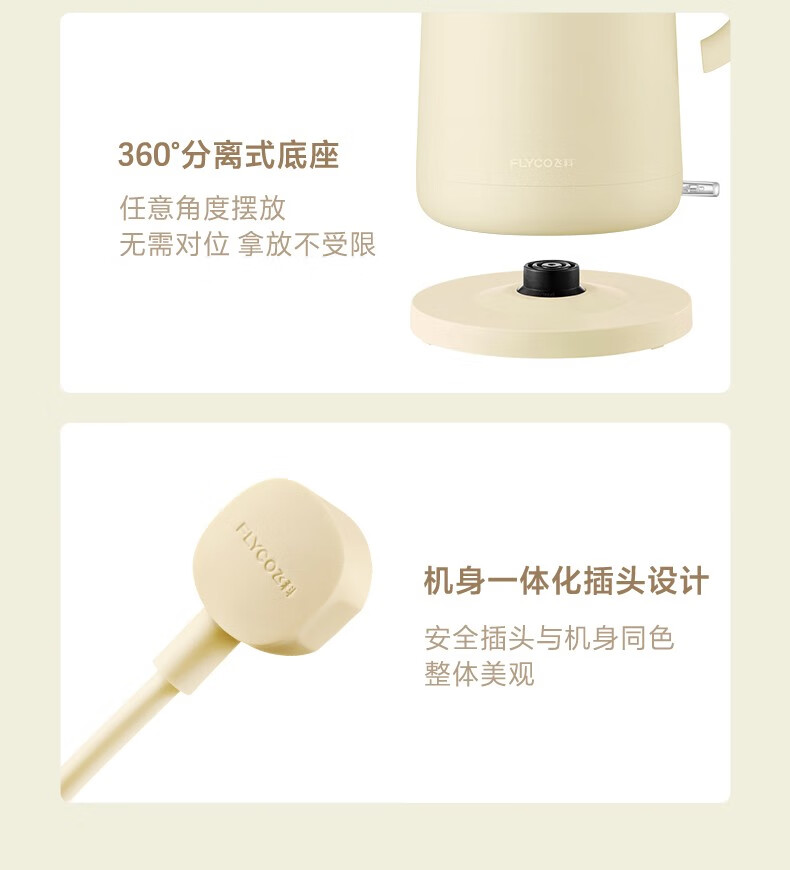 飞科(FLYCO)EK3701电热水壶 食品级304不锈钢 1.5L容量双层防烫烧水壶 单位:个 野卖黄