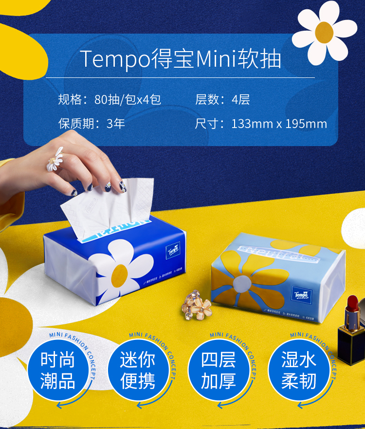 得宝Mini系列抽纸4层80抽16包 2898-16(单位:提)