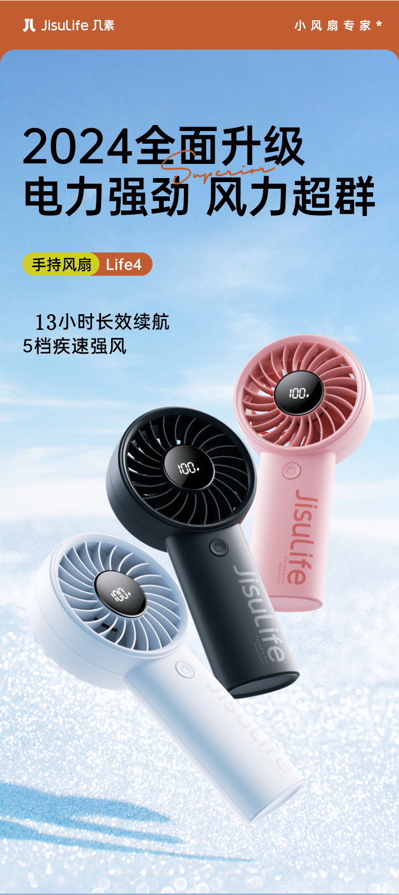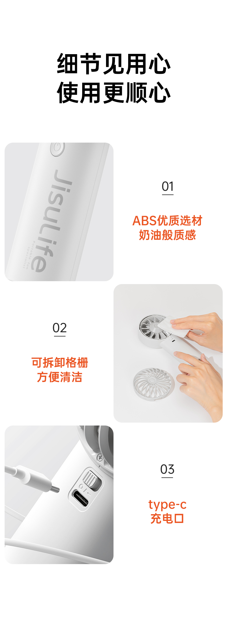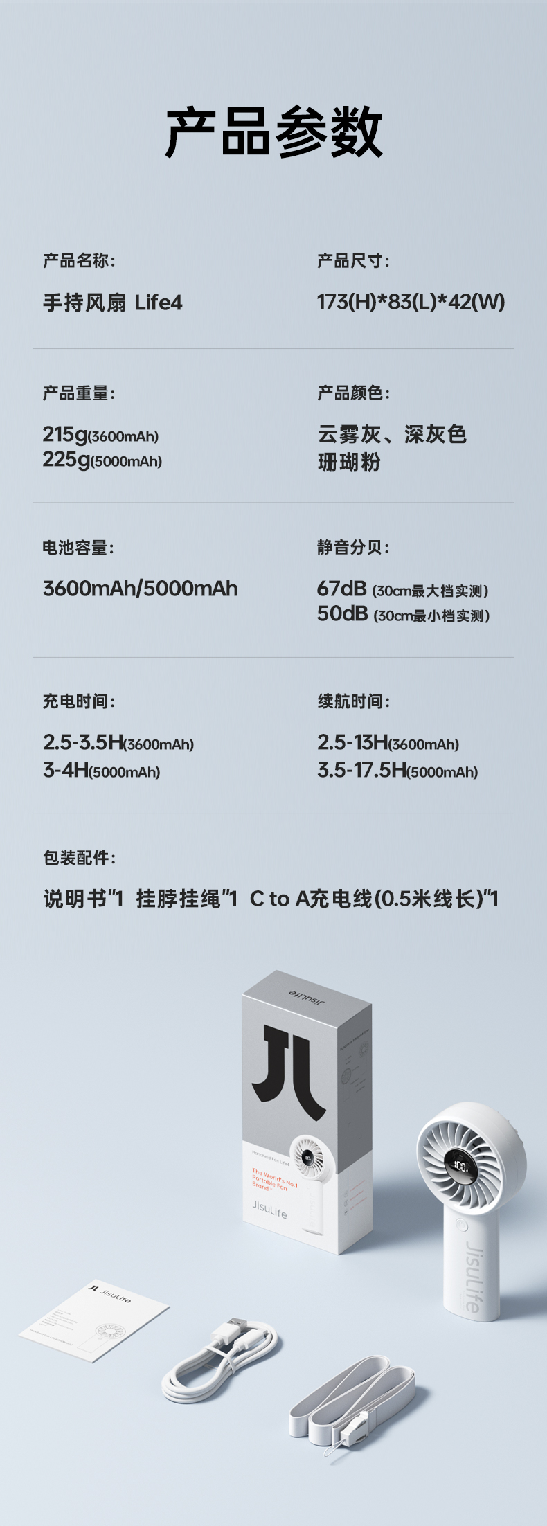 几素(JISULIFE)3600mAh手持小风扇Handheld Fan Life4挂绳(单位:个) 浅灰色