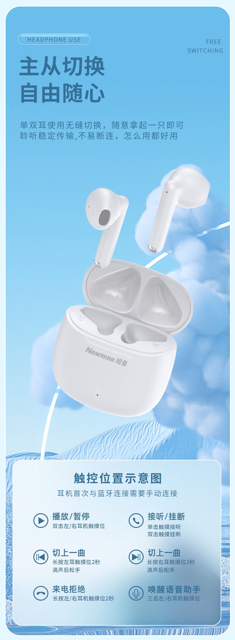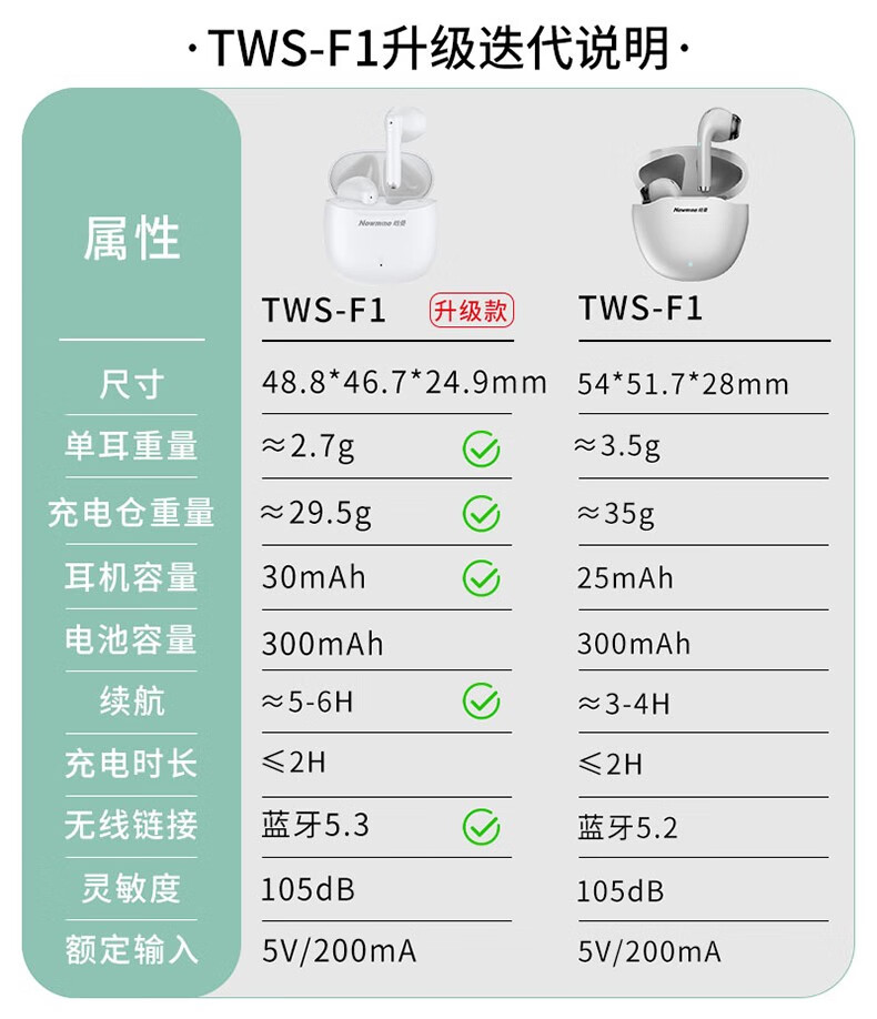 纽曼F1TWS蓝牙耳机 白色(单位:个) 白色