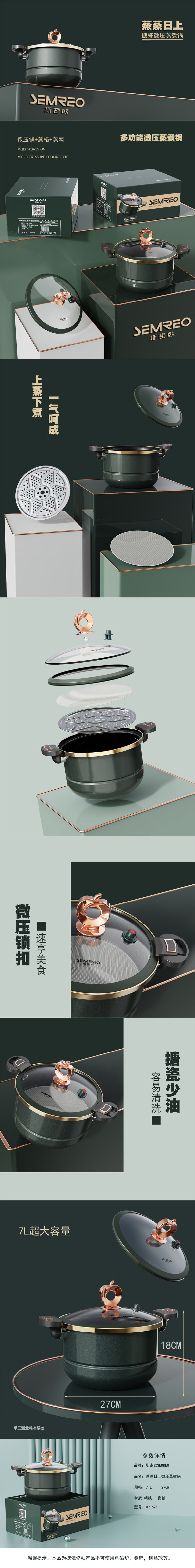 斯密欧 蒸蒸日上搪瓷微压蒸煮锅7L 单位:个 MR-625