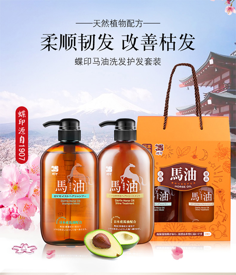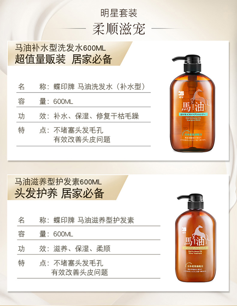 蝶印 马油洗发+护发套装600mL+600mL(补水型+滋养型)(单位:盒) 拿铁色