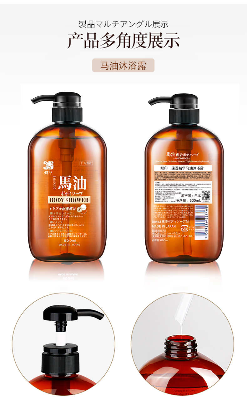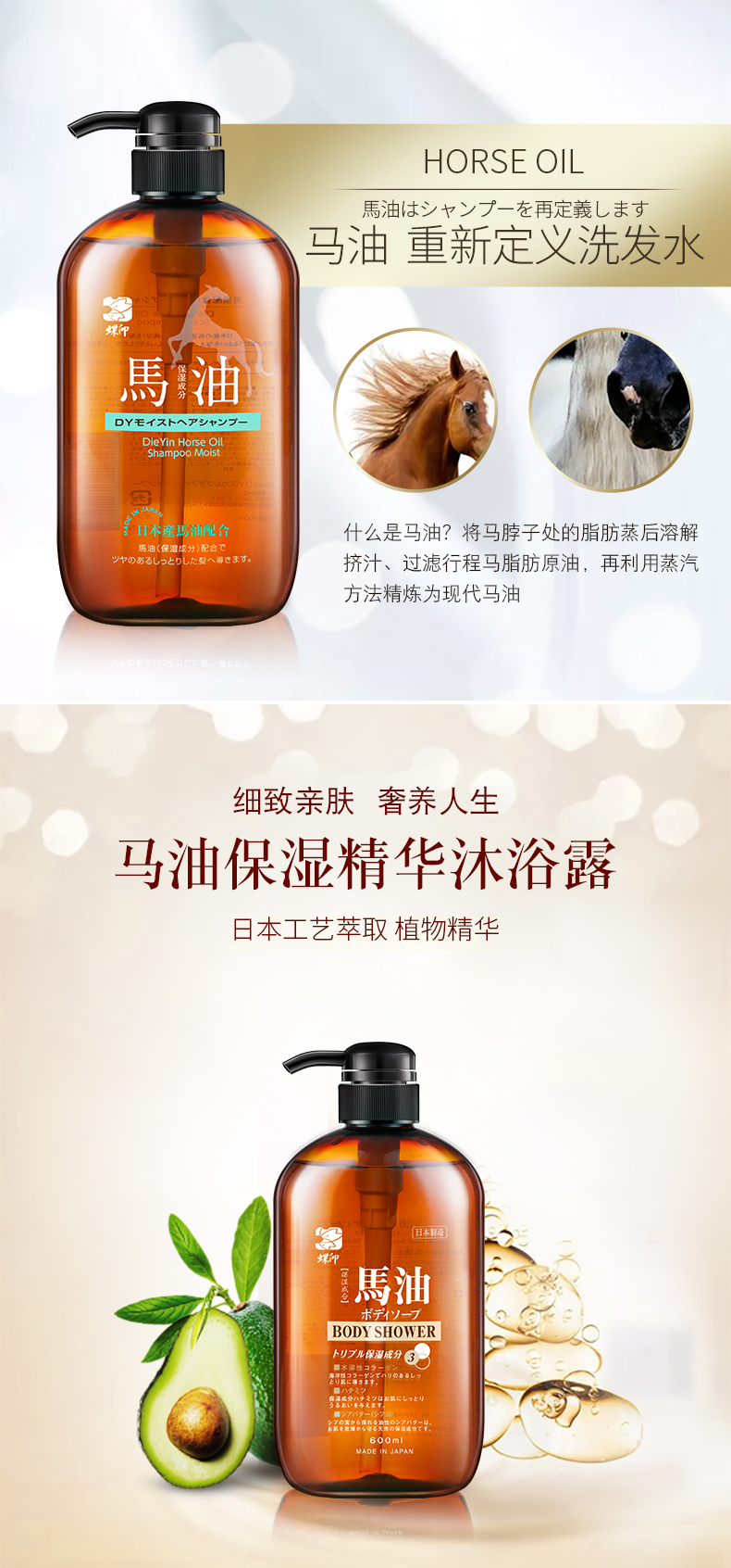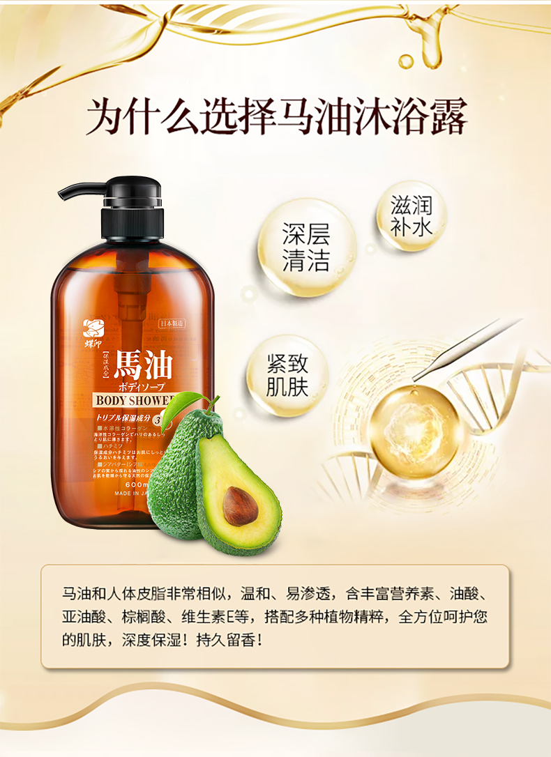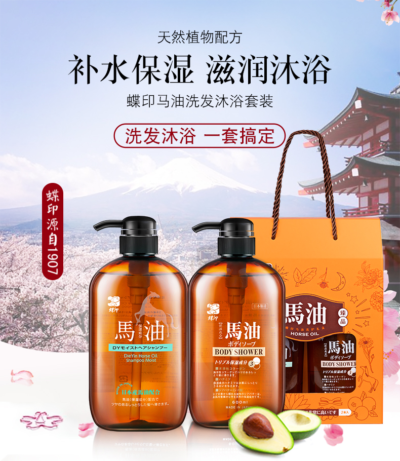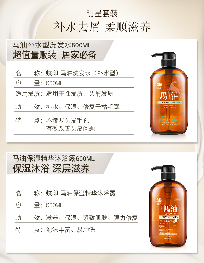 蝶印 马油洗发沐浴礼盒 补水洗发水600ml+保湿沐浴露600ml(单位:套) 拿铁色