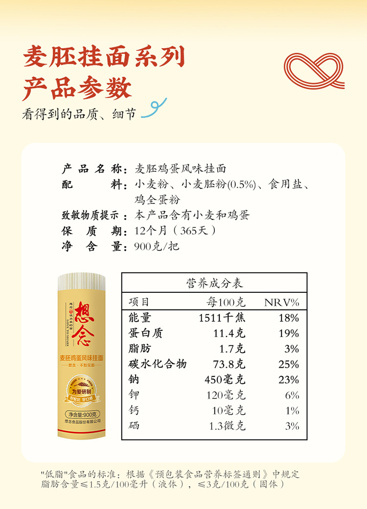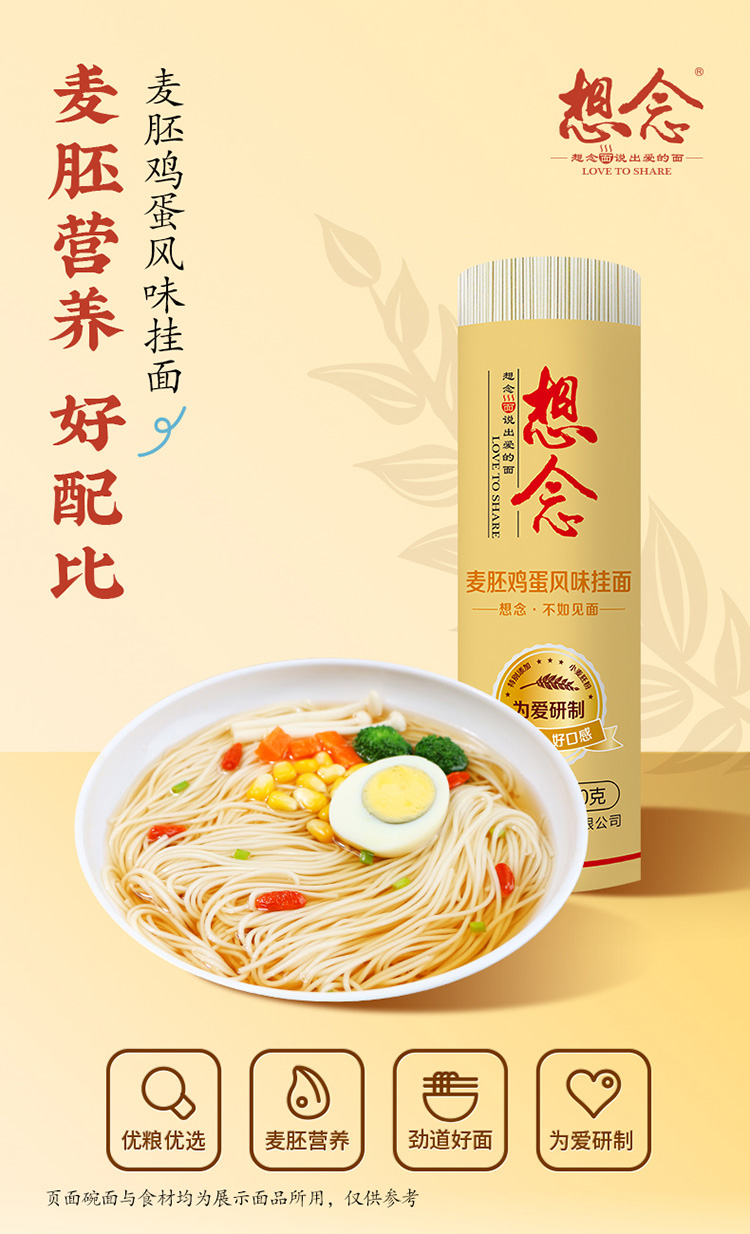 想念面条 麦胚鸡蛋风味挂面900g*1把 琥珀色