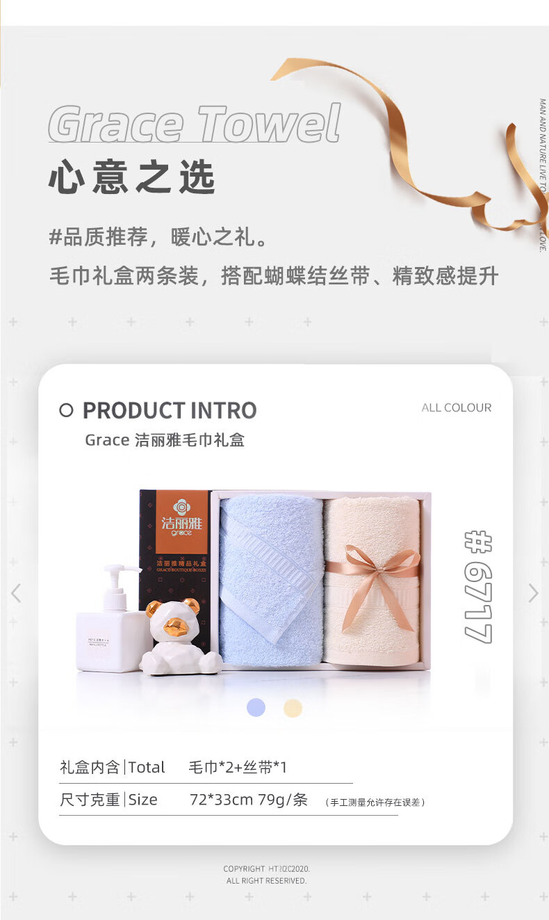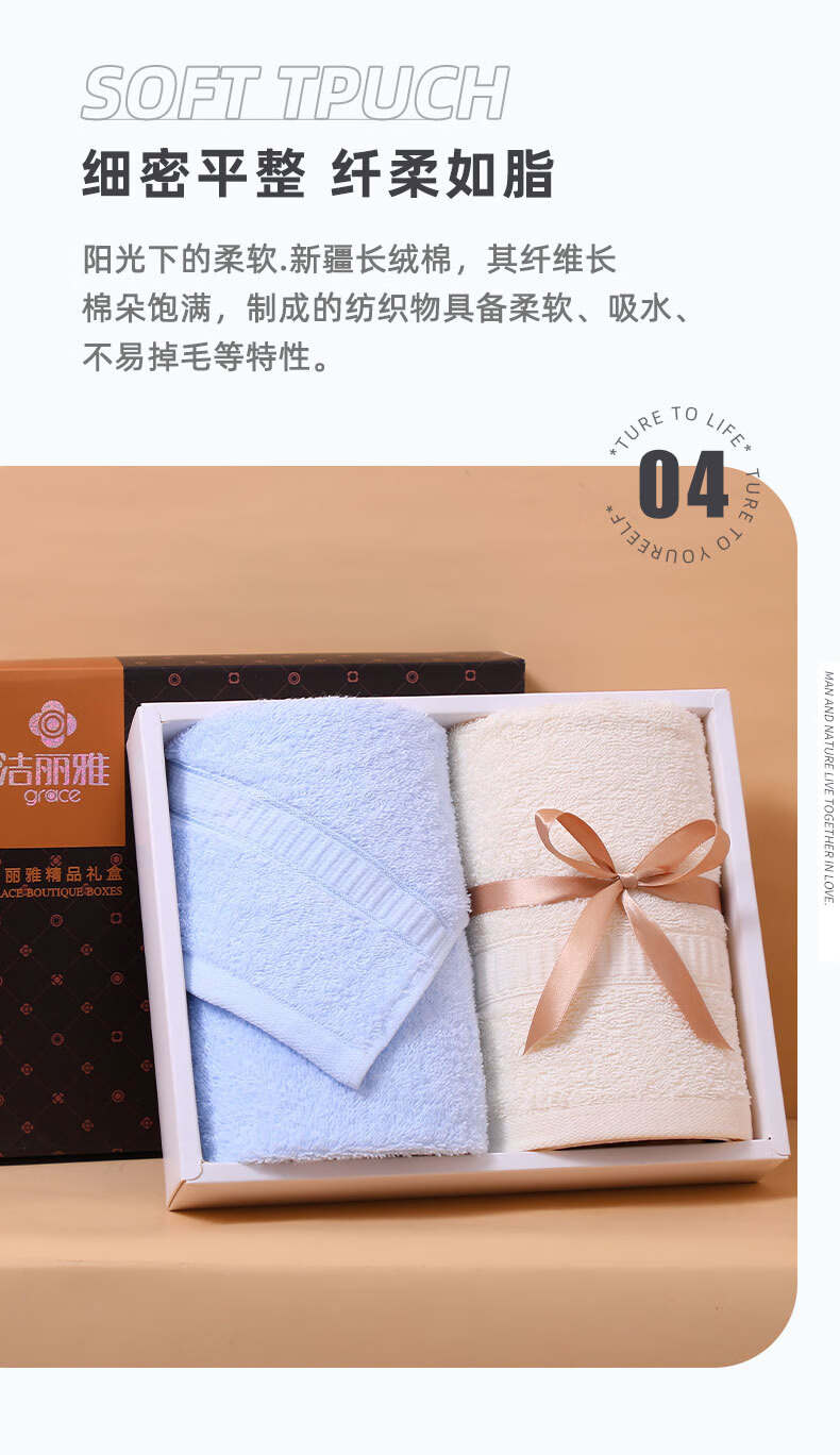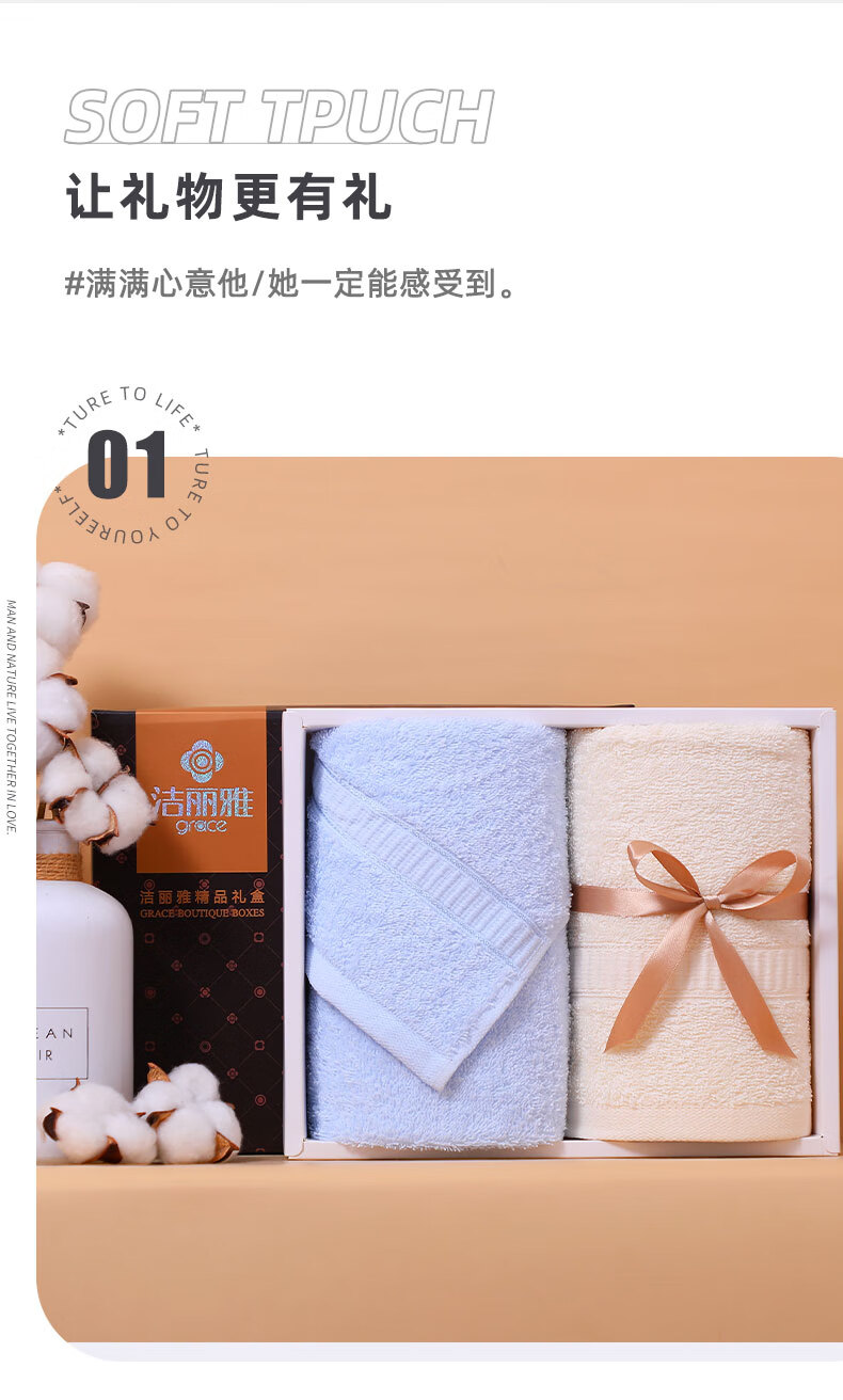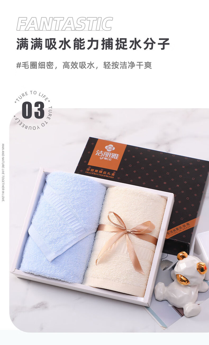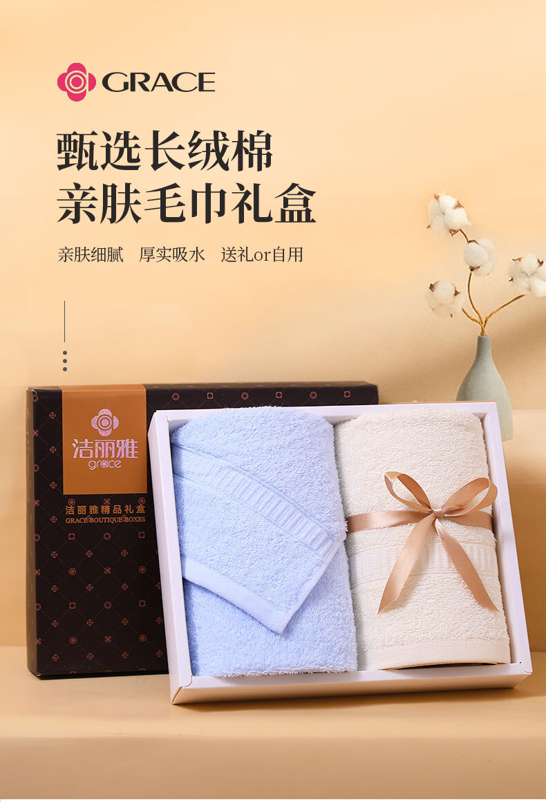洁丽雅Grace 抗菌毛巾礼盒A类两件套商务套装 男女柔软吸水纯棉 6717单位:盒 混色