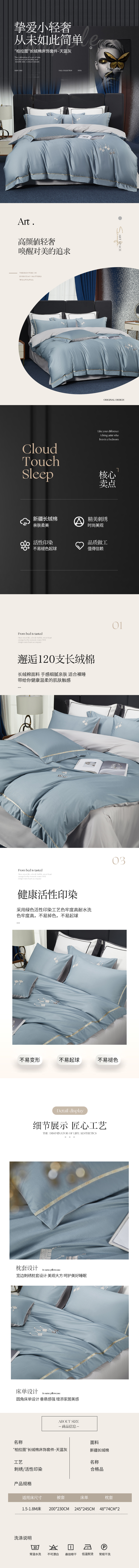 紫韵“柏拉图”长绒棉床饰四件套200*230CM(单位:套)-天蓝灰 深蓝色 被套:200*230 床单:24