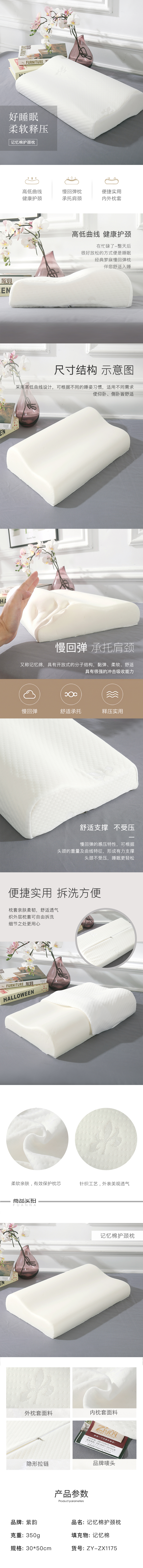紫韵记忆棉护颈枕 30*50CM(单位:个)-白色 钢琴白