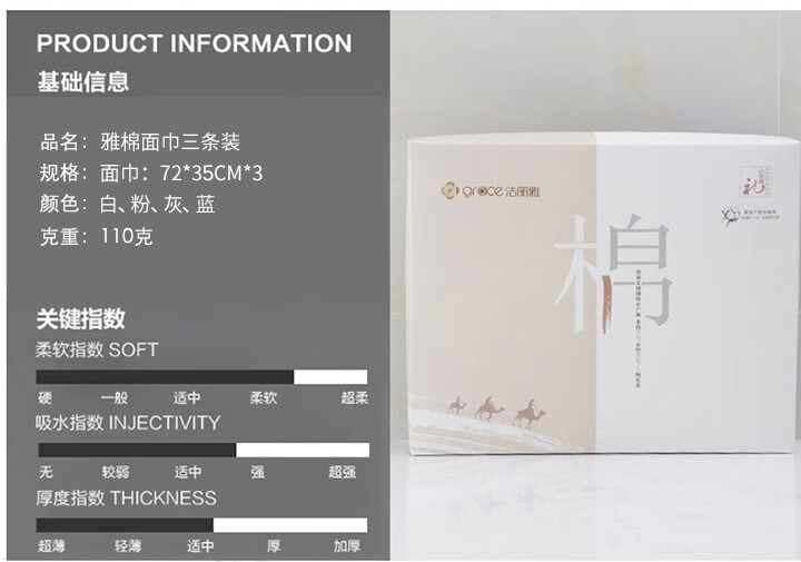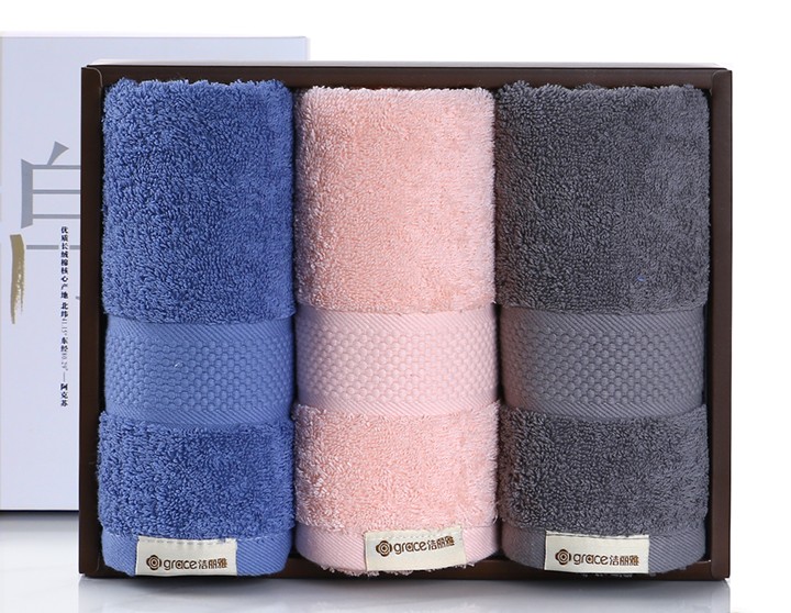 洁丽雅Grace柔软舒适家用吸水男女毛巾纯棉-雅棉W0355三条装(颜色随机发)