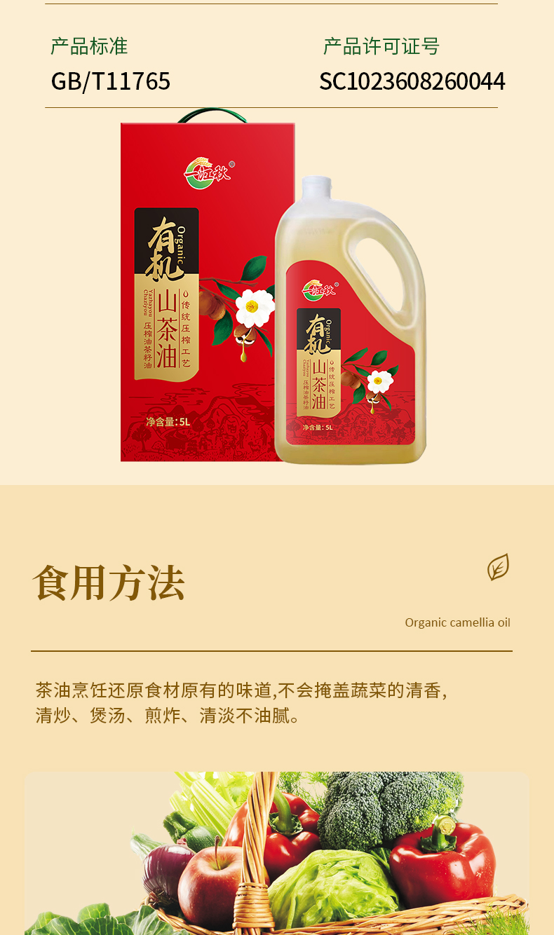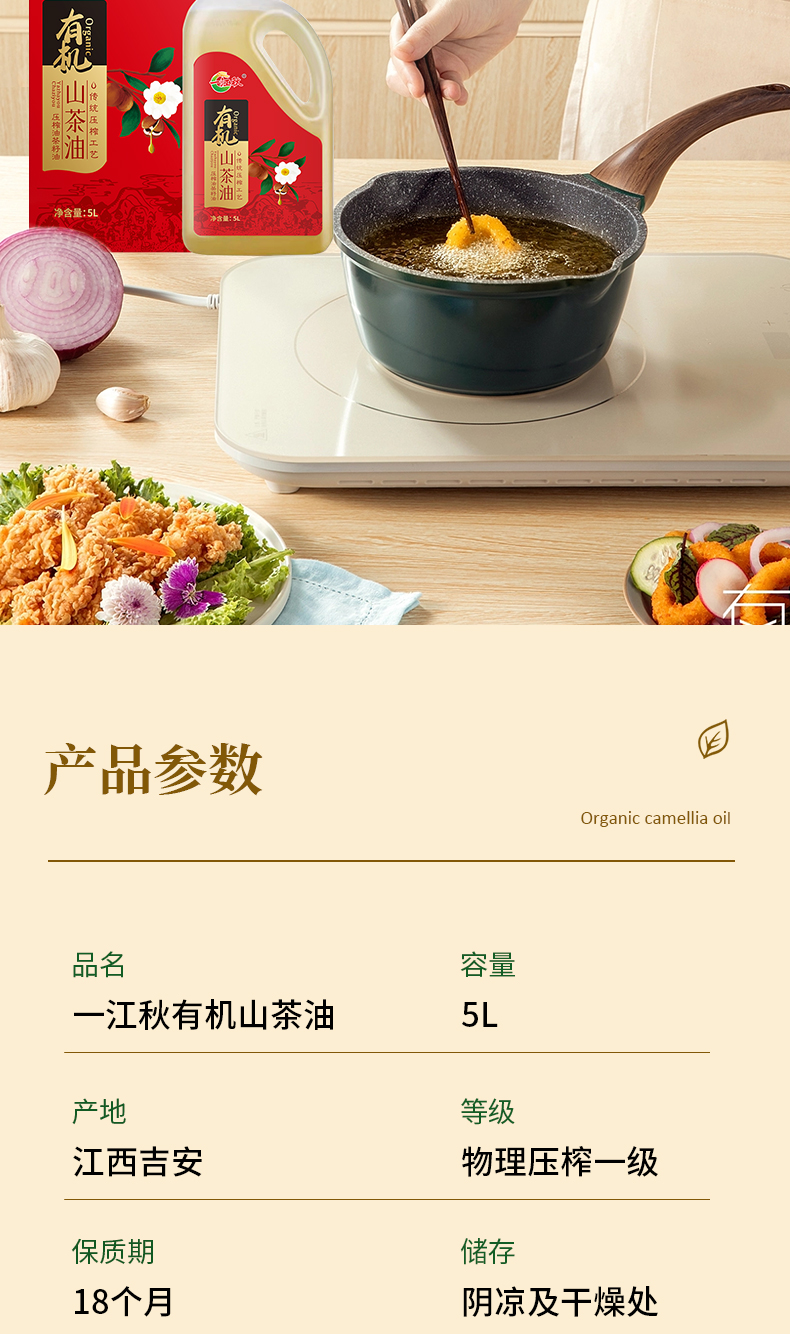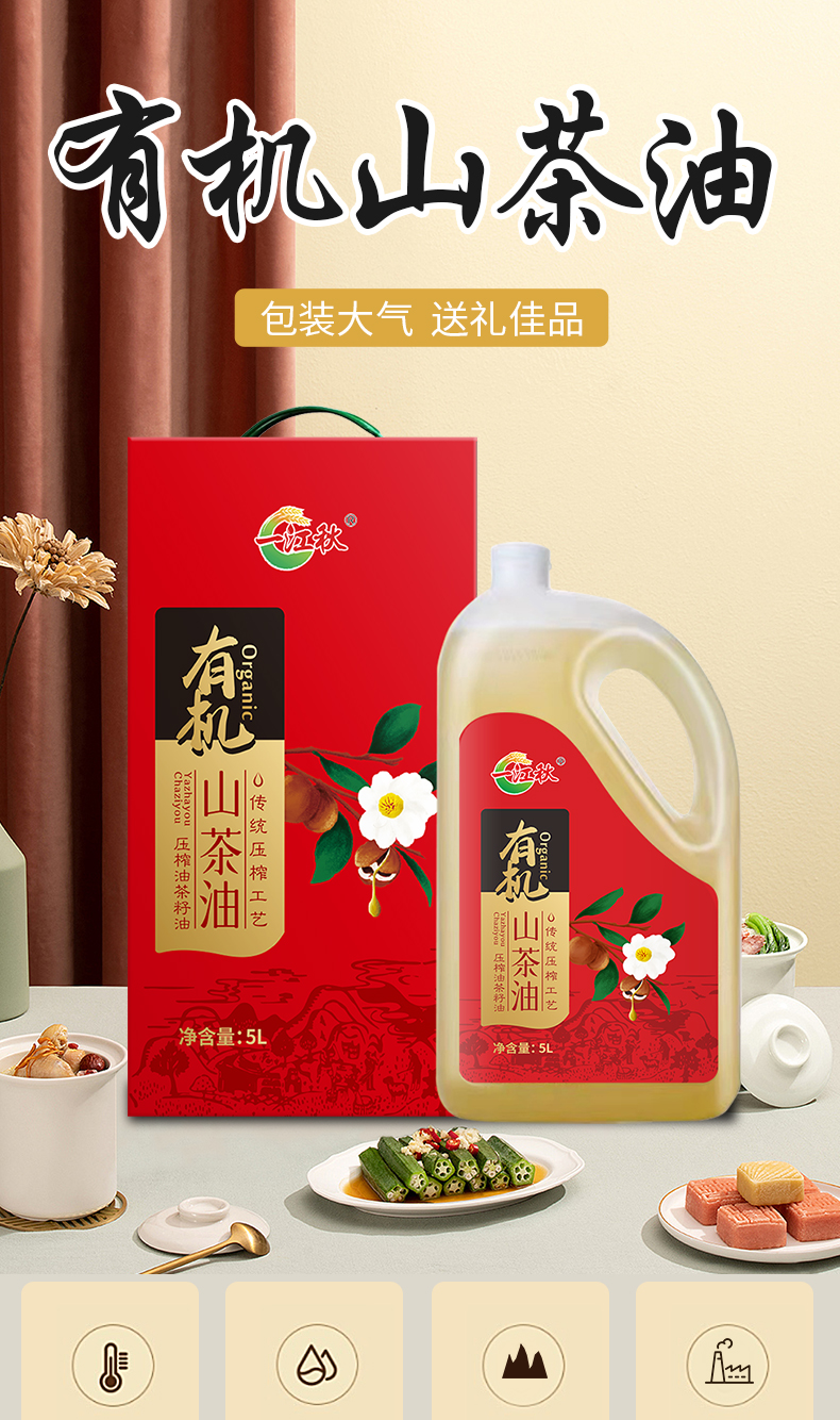 一江秋 有机山茶油 物理压榨 5L(单位:桶) 红色