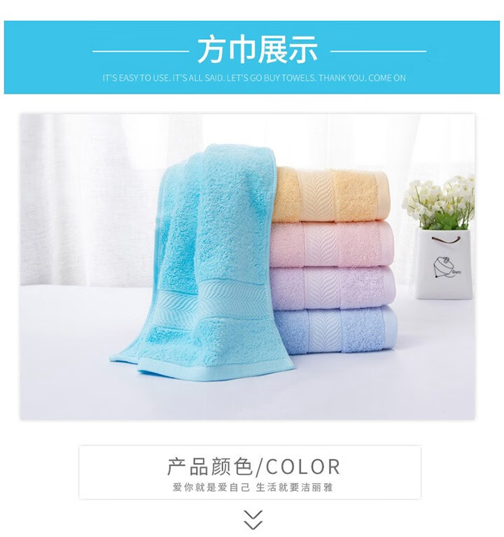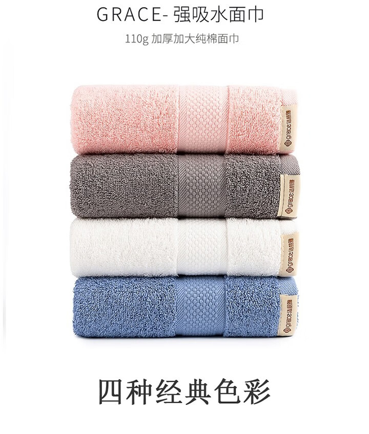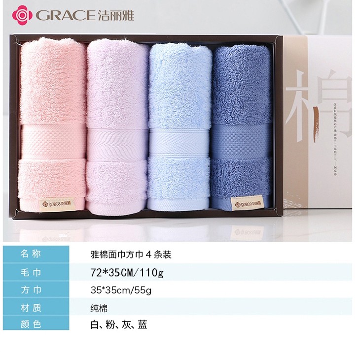 洁丽雅Grace柔软舒适家用吸水男女毛巾纯棉-雅棉W0355四条装(颜色随机发)