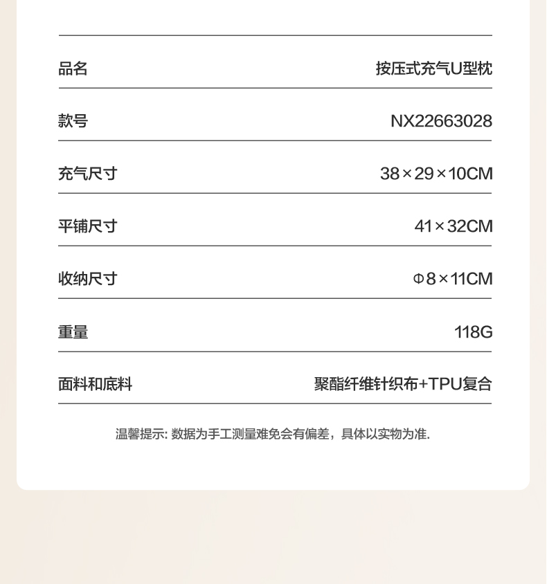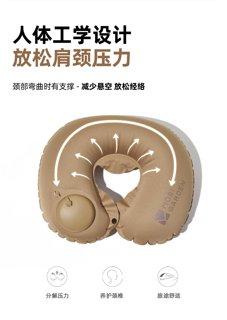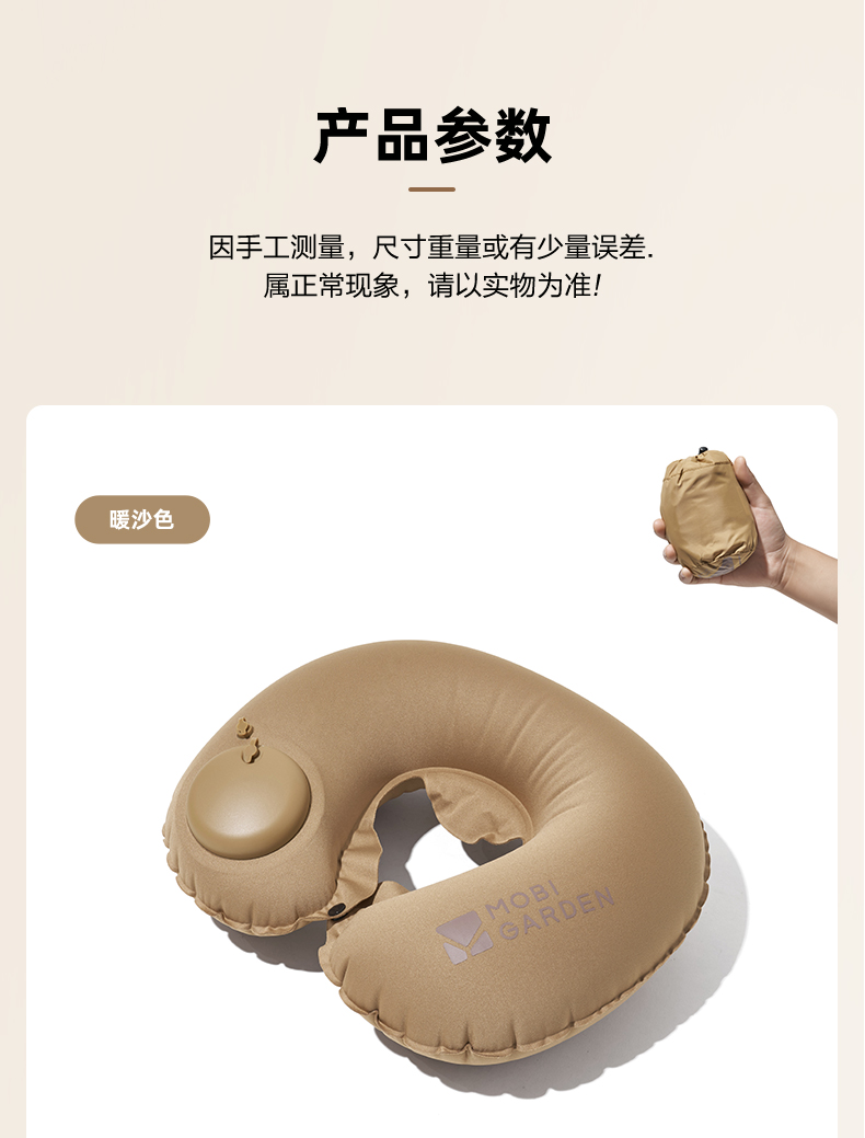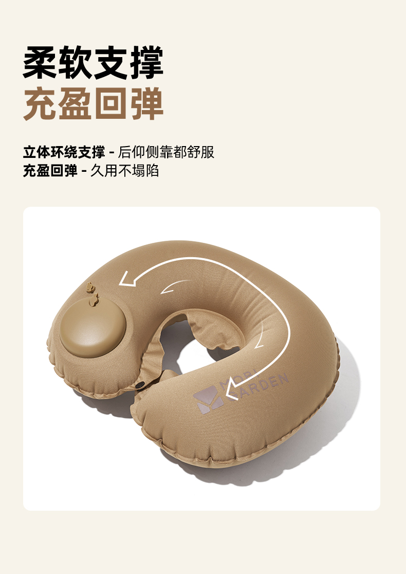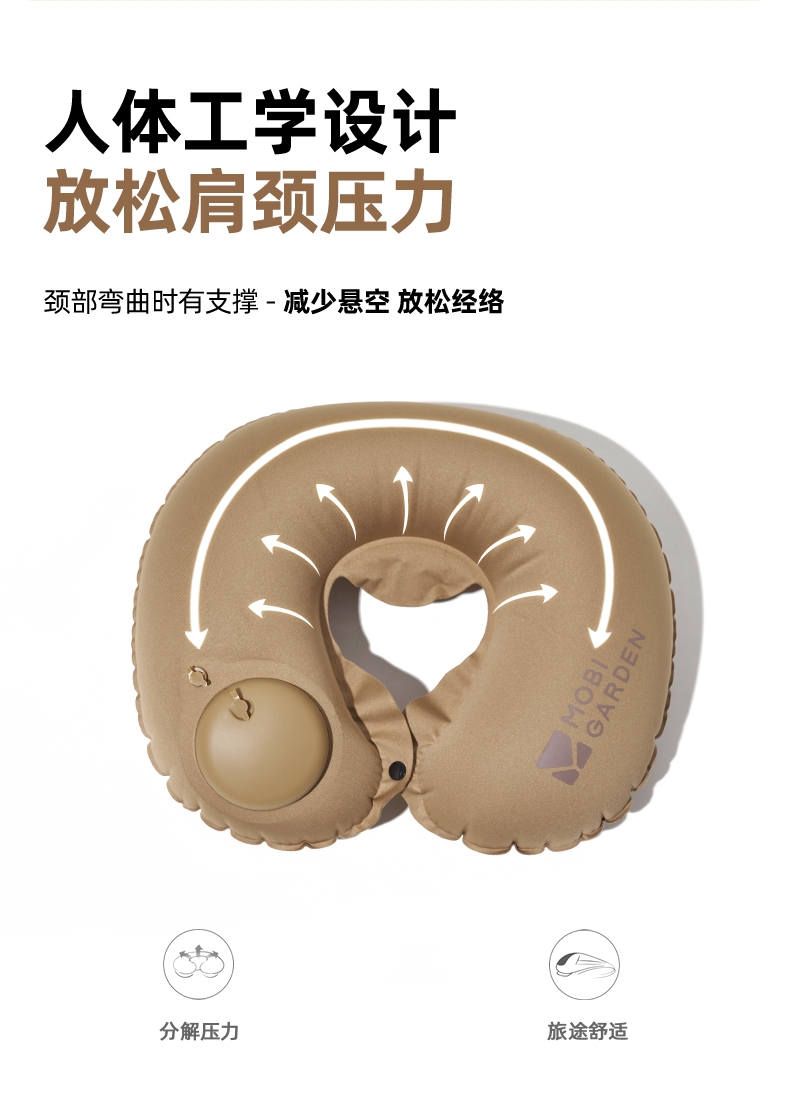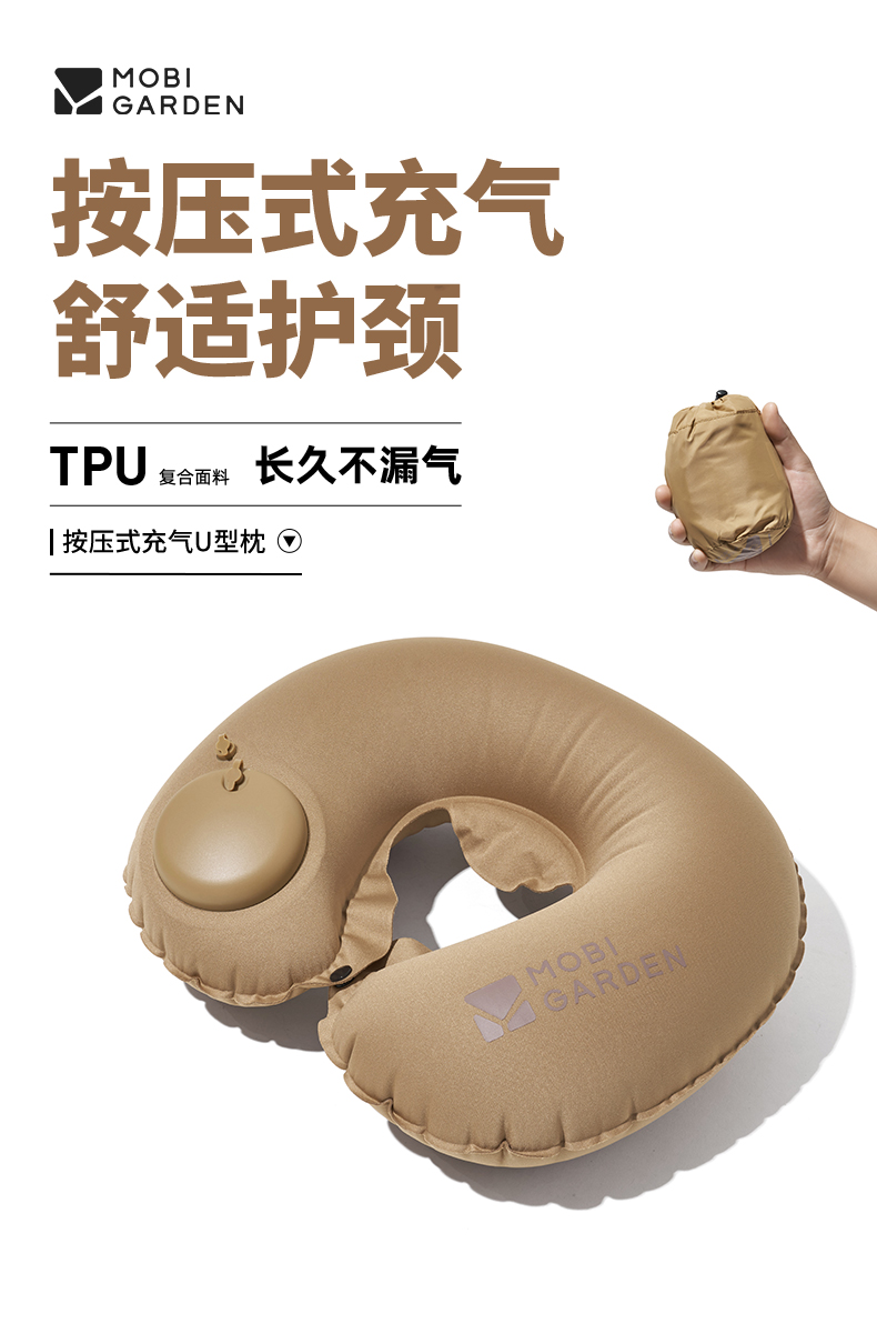 牧高笛(MOBIGARDEN)按压式U型枕 户外露营充气u型枕睡枕便携旅游按压式气枕 单位:个 暖沙色