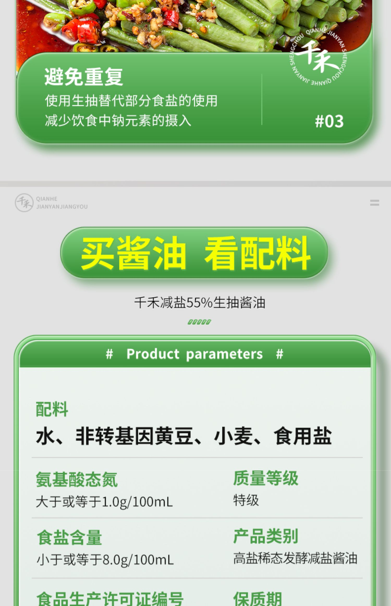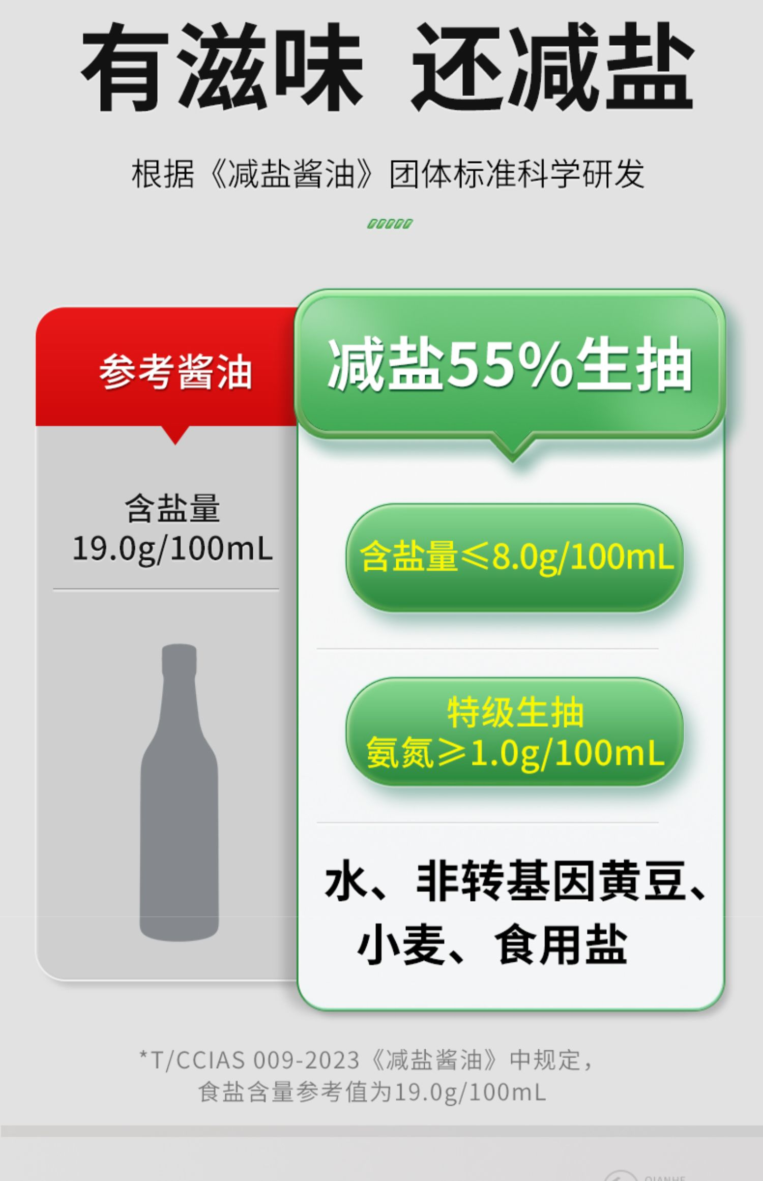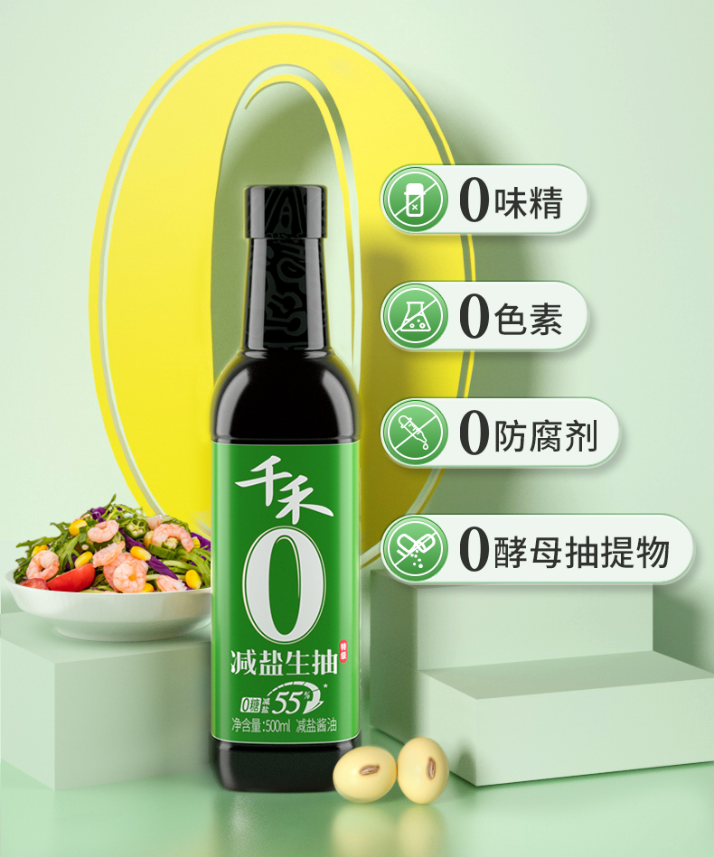 千禾零添加酱油减盐55%特级生抽 500ml*2 500mL*2