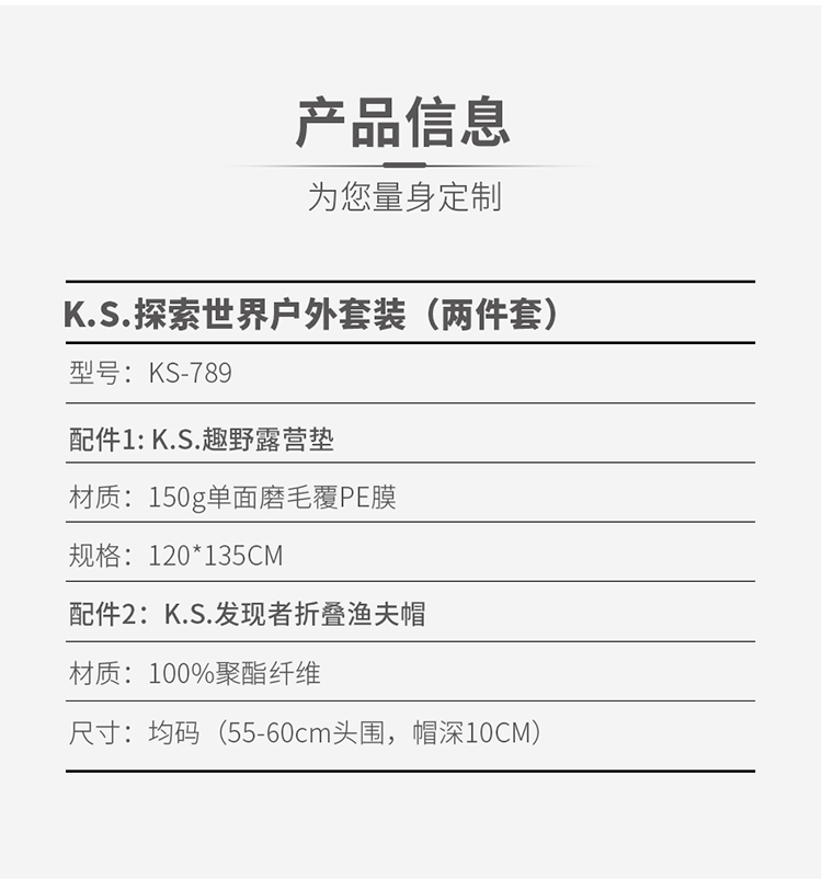 K.S.探索世界户外套装KS-789 单位:套 黑色