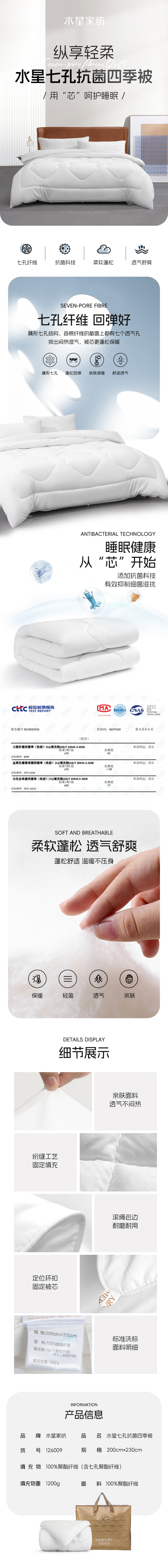 水星家纺 水星七孔抗菌四季被200cm×230cm 126009/条 白色