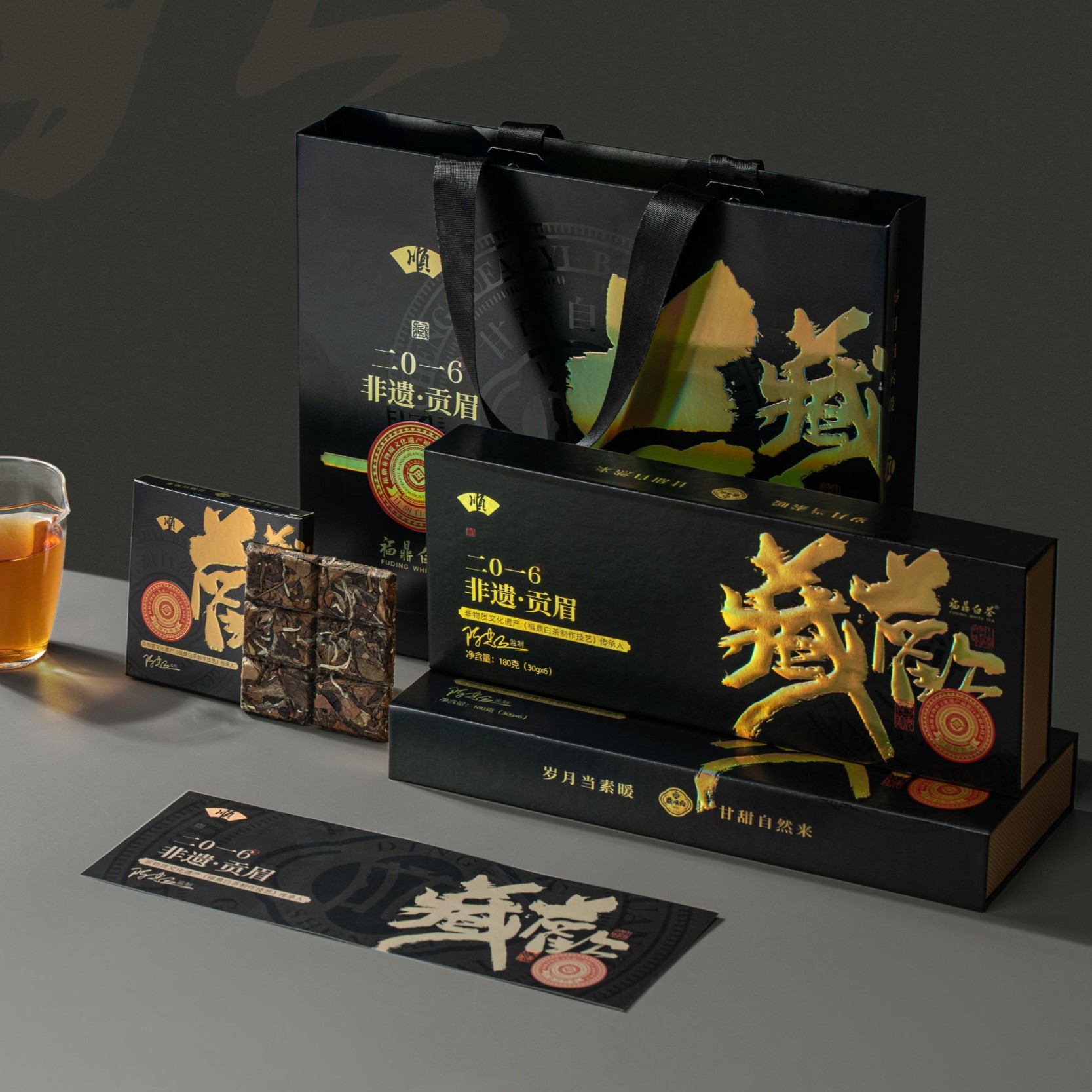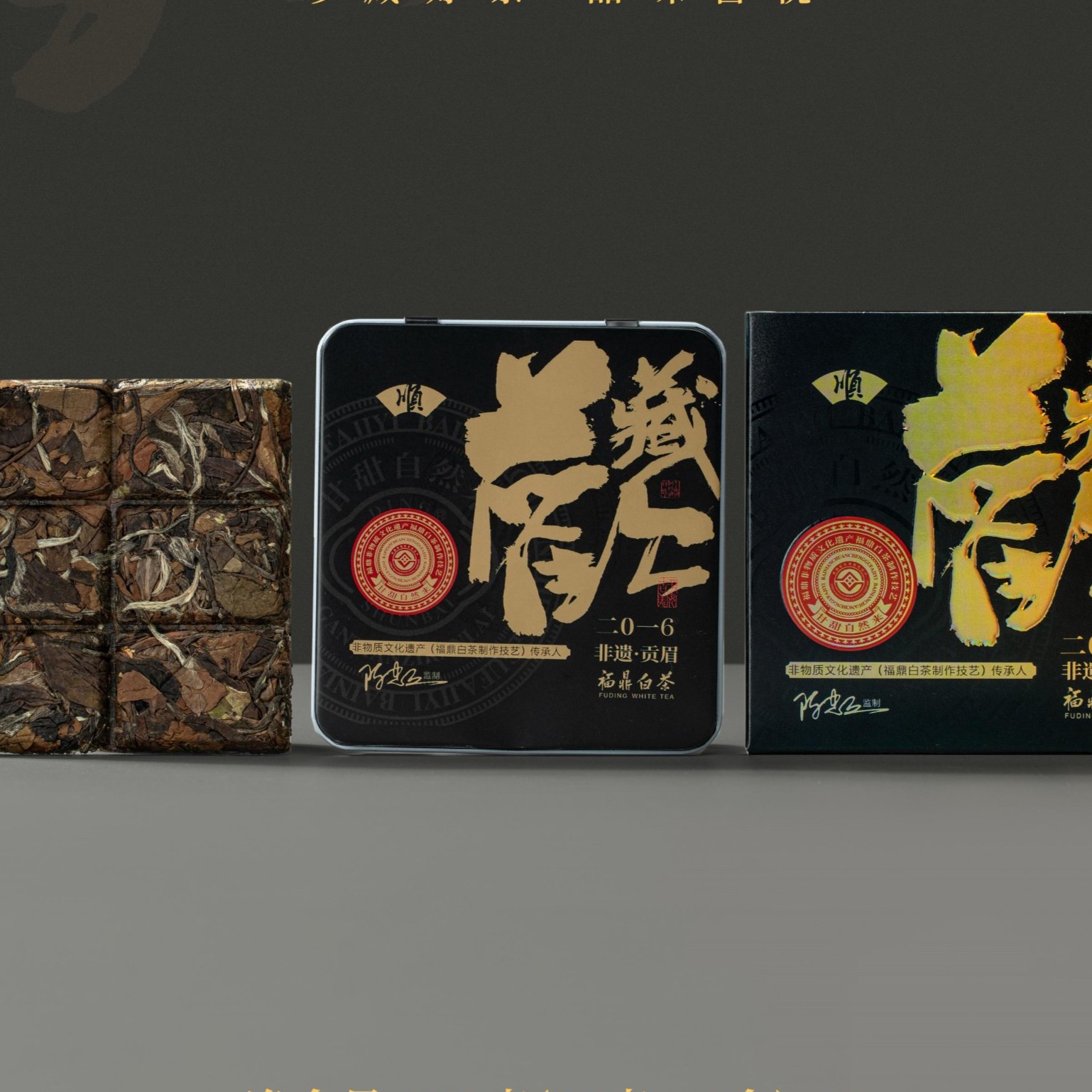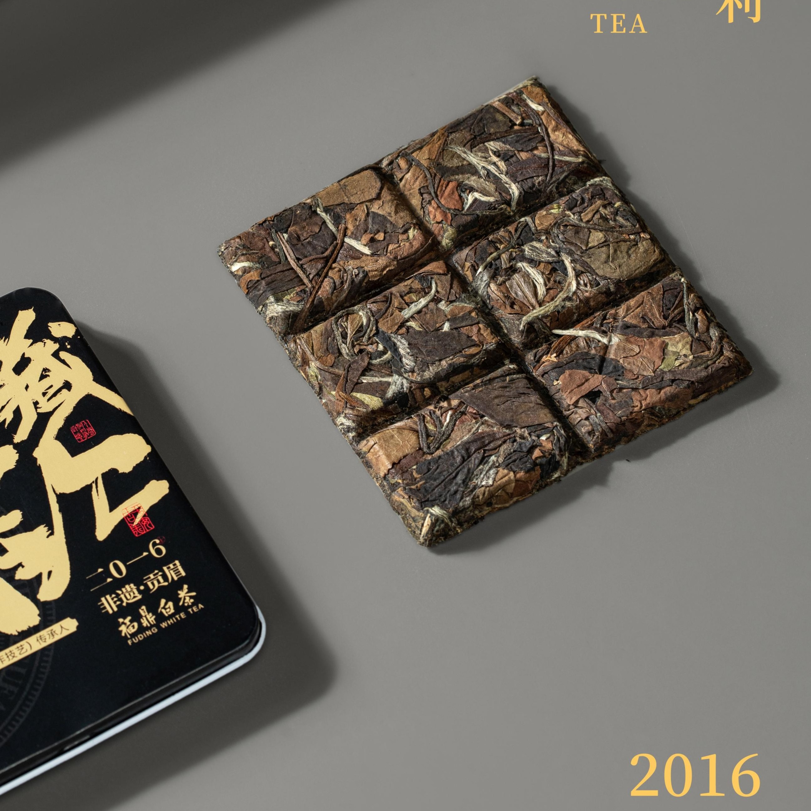 郑莲英茶叶白茶2016年一级贡眉福鼎老白茶紧压小方片茶礼盒装360g(单位:盒) 曜石黑