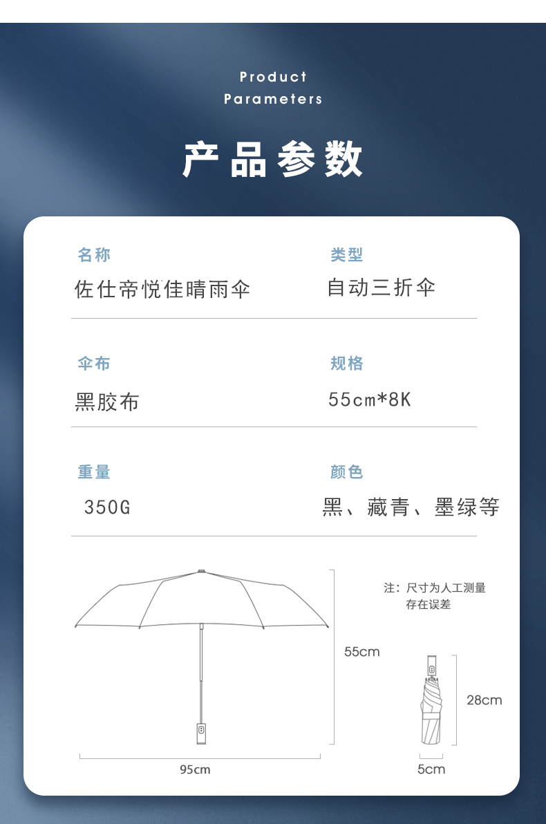 佐仕帝 ZSD-S079 悦佳三折伞55cm*8K(单位:把) 黑色