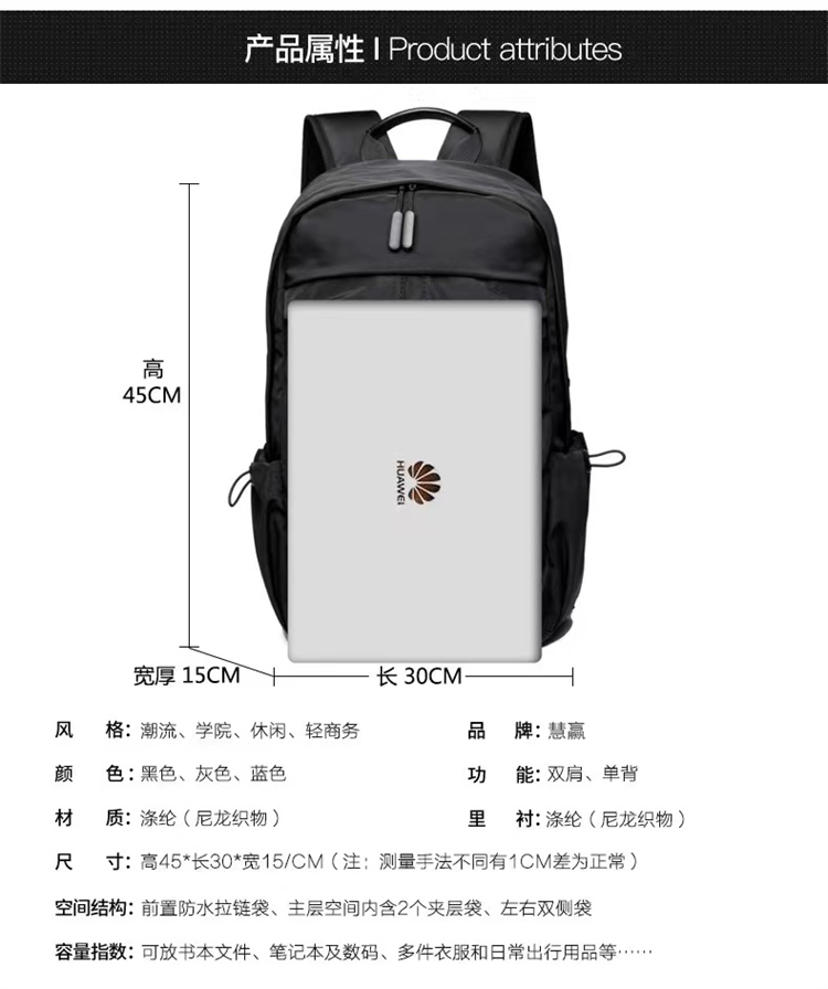 慧赢 HY-B06 酷悦商务双肩包45*30*15cm(单位:个) 黑色