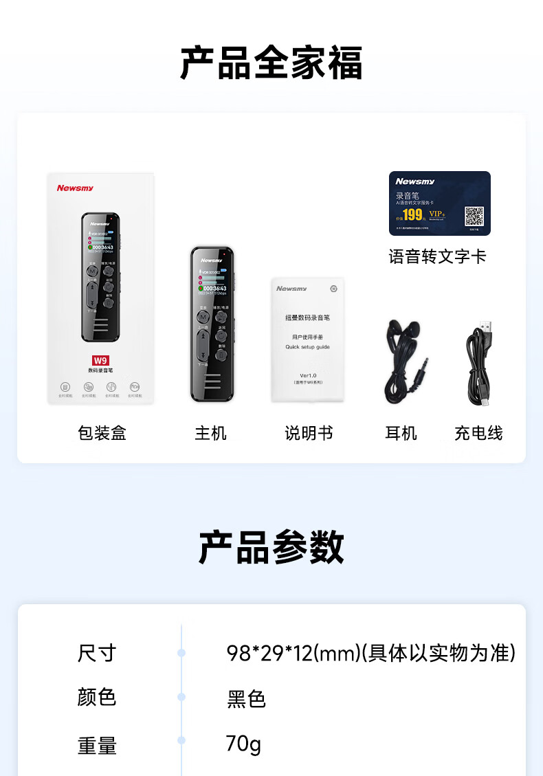 纽曼W9-32G录音笔黑色(单位:个) 曜石黑