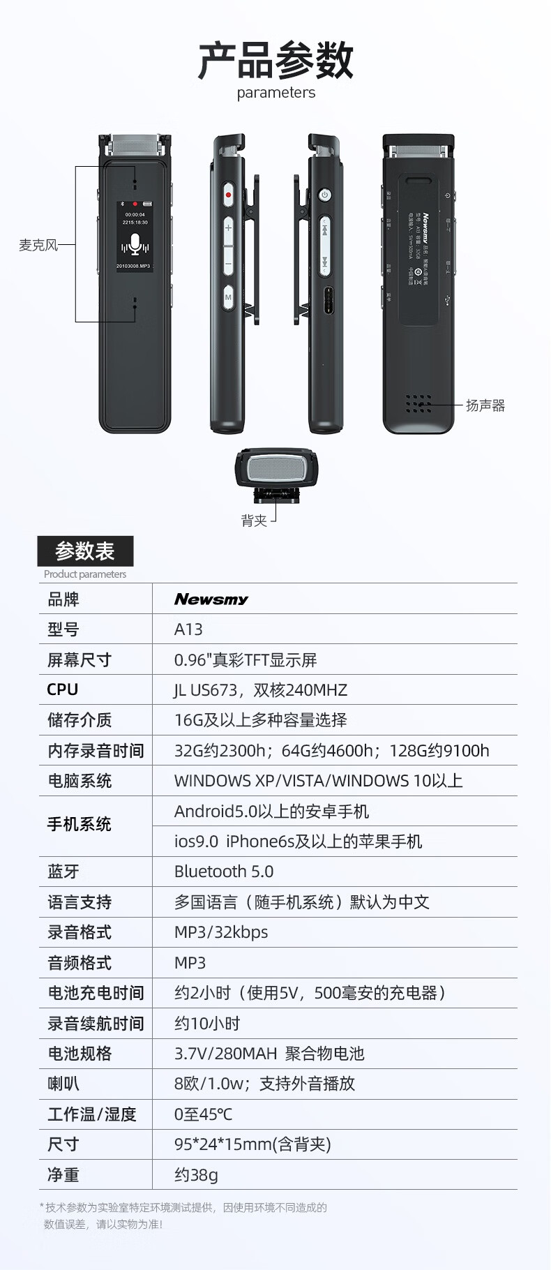 纽曼A13-64G录音笔黑色(单位:个) 曜石黑