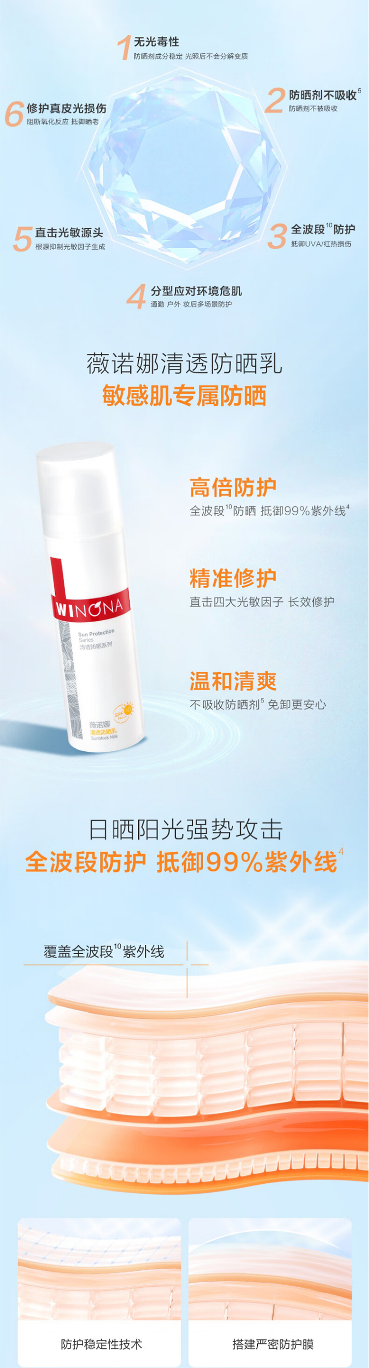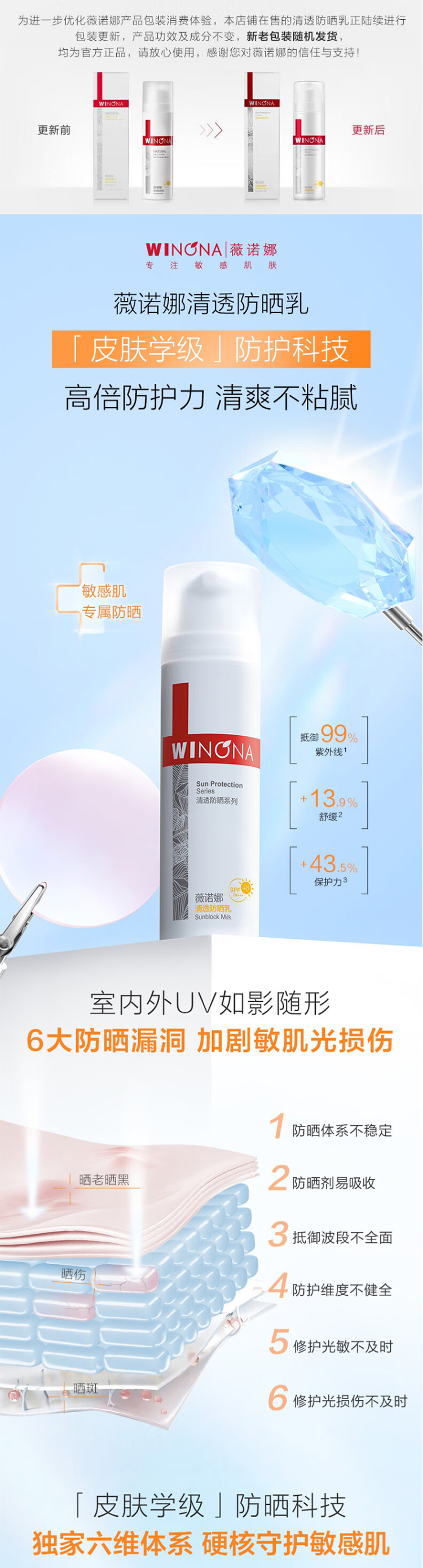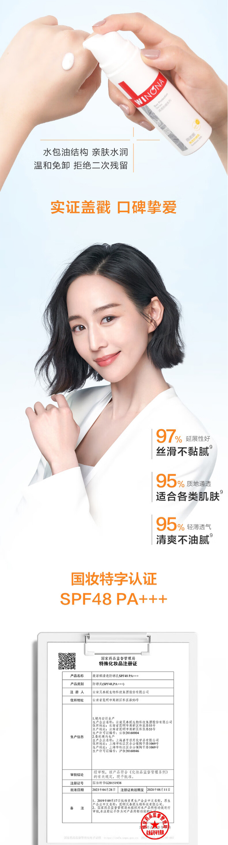 薇诺娜清透防晒乳50g+清透防晒乳15g SPF48PA+++(单位:支)