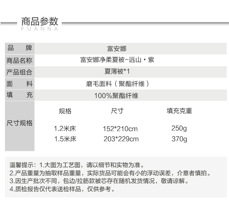 富安娜净柔夏被远山(单位:床) 紫色152*210cm\250g