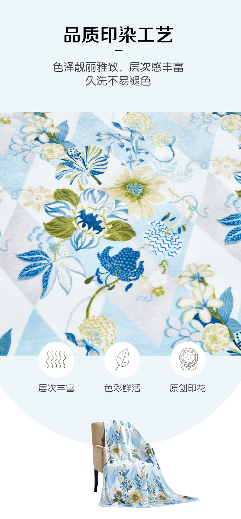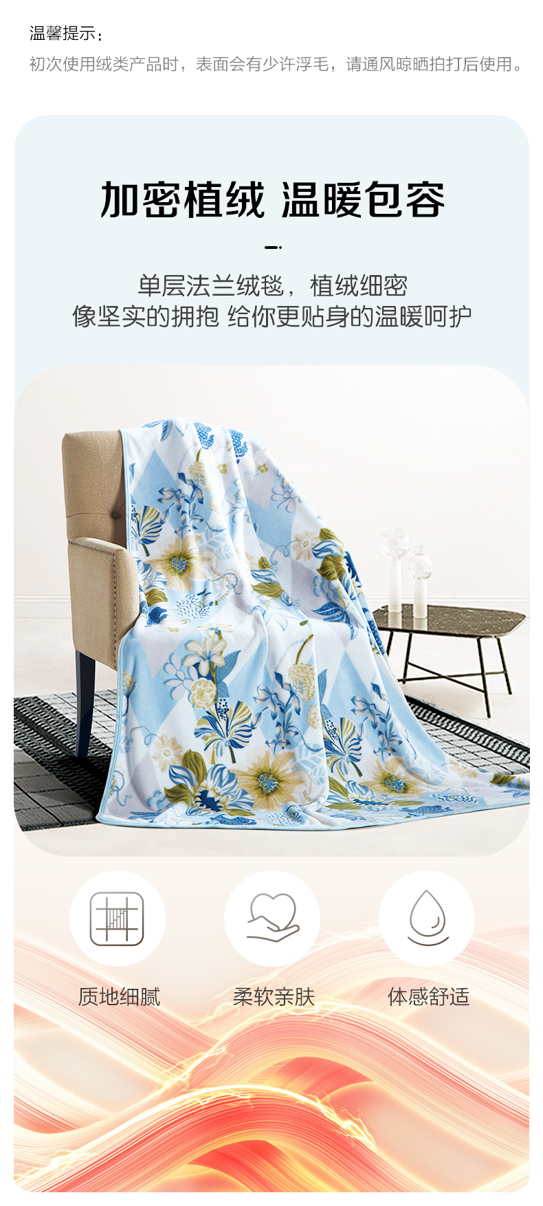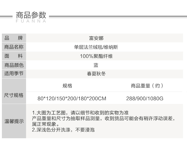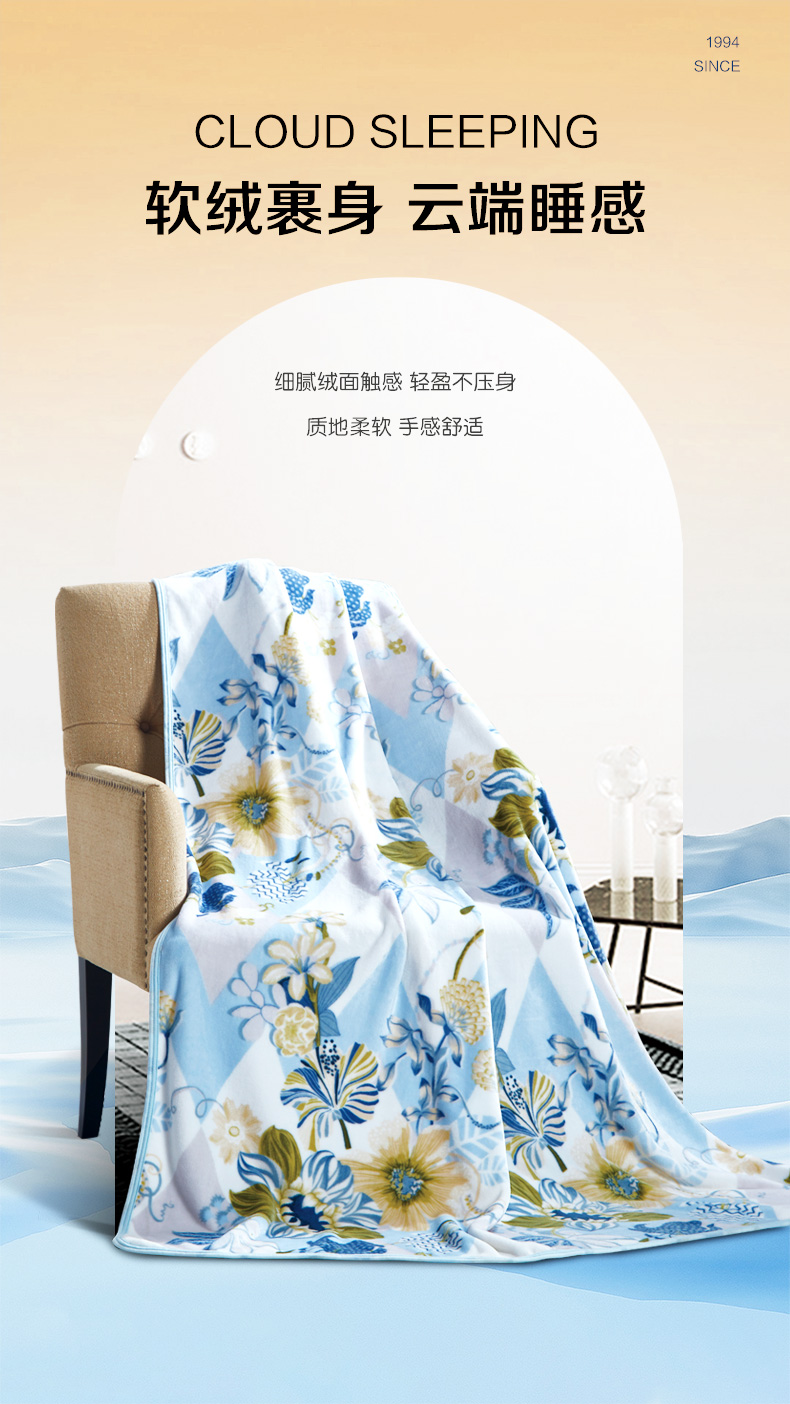 富安娜 维纳斯 80*120cm 午休法兰绒毯维纳斯 蓝色(单位:床)