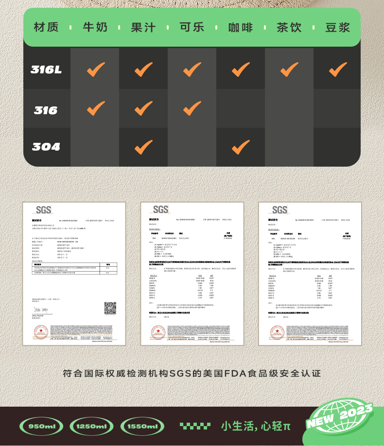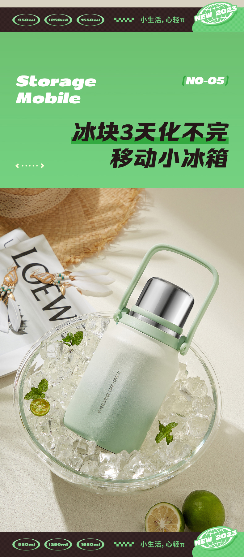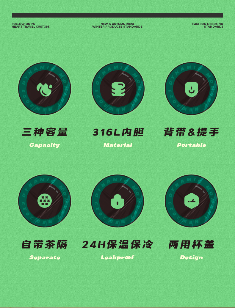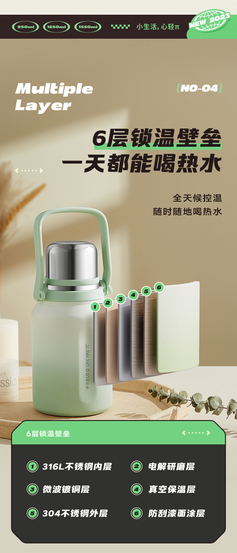 物生物简诗保温杯1550ML单位:个 莺歌绿