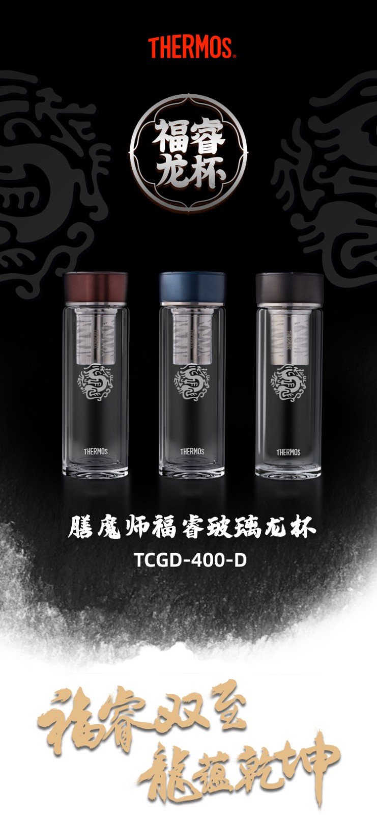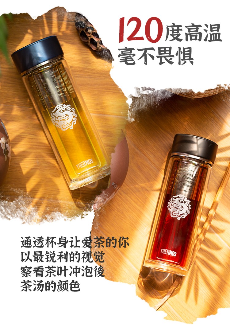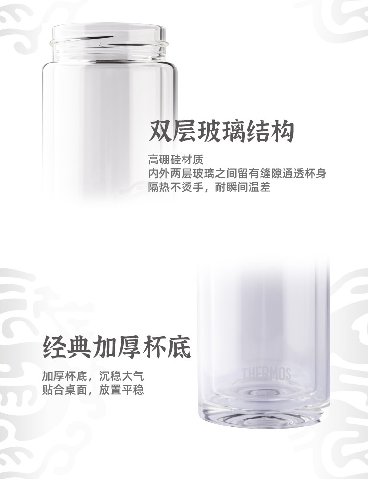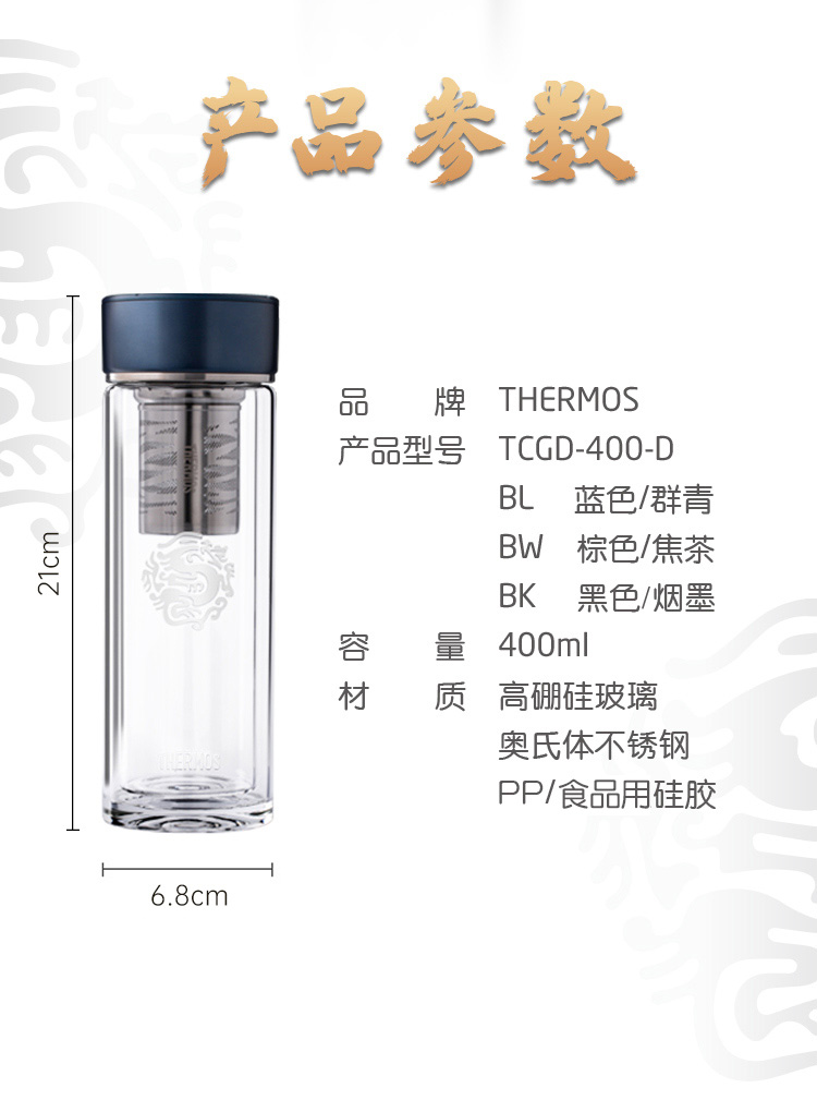 THERMOS膳魔师400ml透明双层玻璃杯TCGD-400-D龙杯(单位:个) 咖啡色