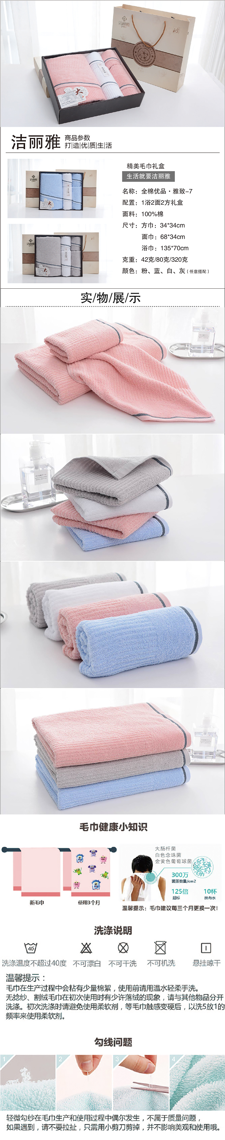 洁丽雅(GRACE)浴巾五件套礼盒 1条浴巾2条面巾2条方巾 雅致-7 (单位:盒) 随机