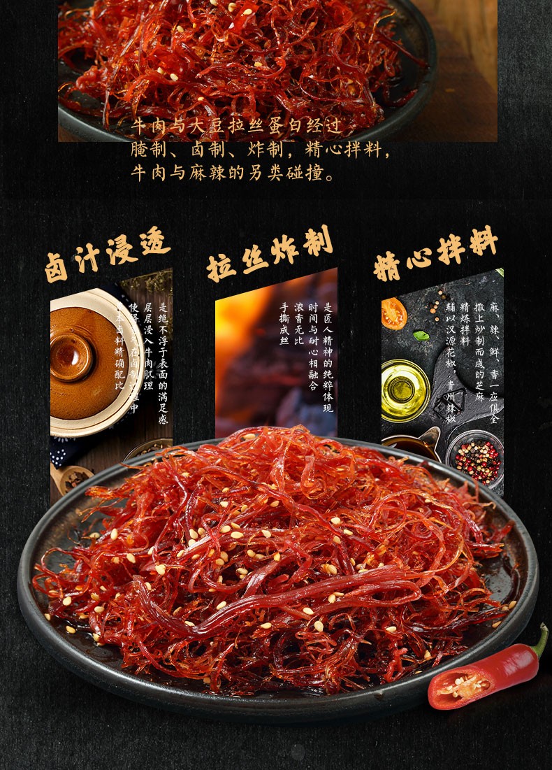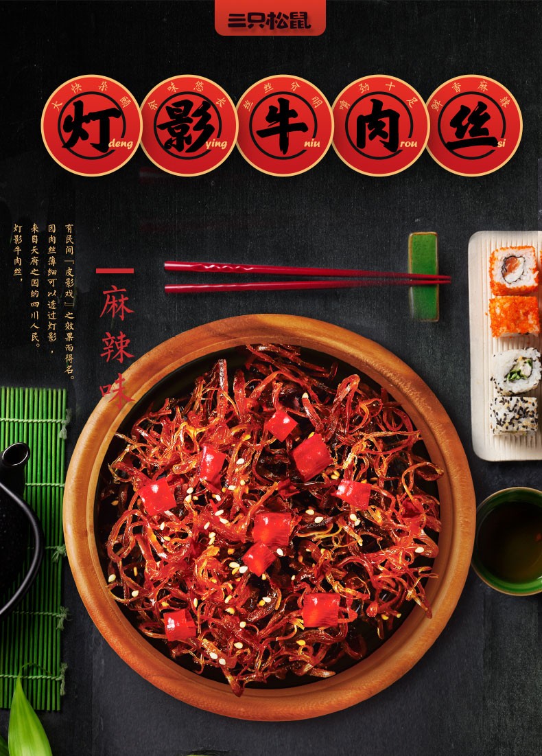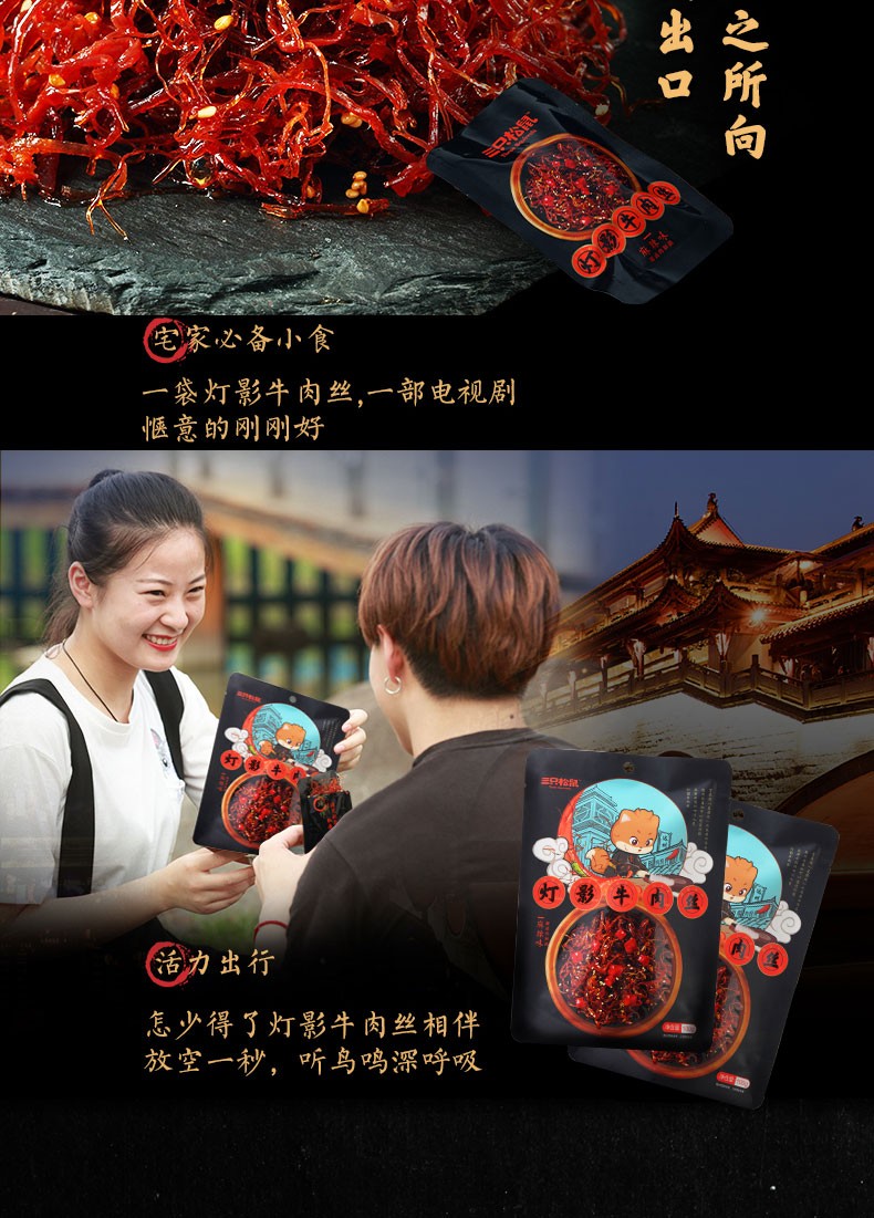 【三只松鼠】新奇特_灯影牛肉丝/麻辣味/100g(单位:袋) 黑色