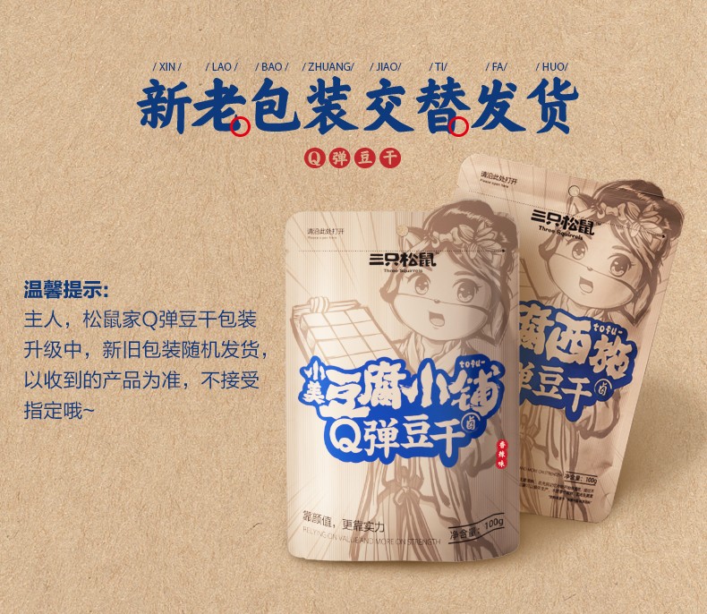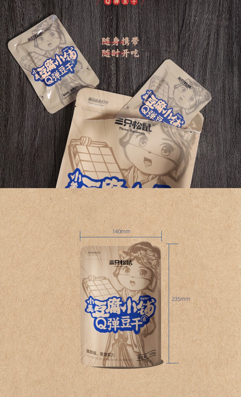【三只松鼠】小美豆腐西施_Q弹豆干/甜辣味/100g(单位:袋) 黄色