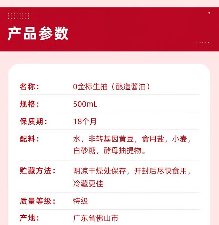海天0金标生抽500ml*2瓶(PET瓶)(中华老字号) 500ml*2瓶