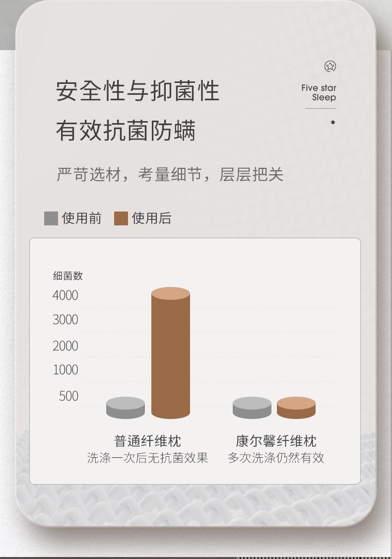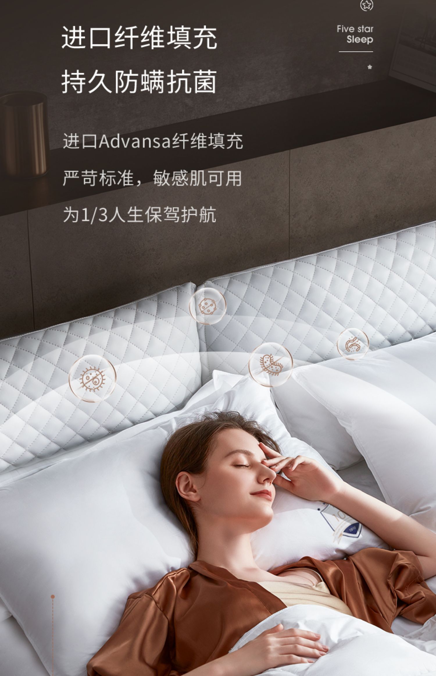 康尔馨希尔顿百年致敬抗菌纤维枕(一只装)48*74CM软枕(单位:只) 白色