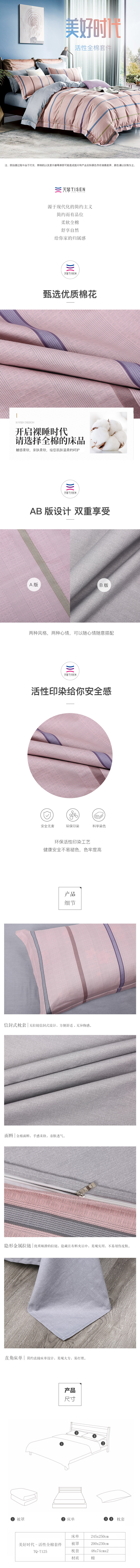 天琴美好时代活性纯棉套件纯棉四件套舒适TQ-T125(单位:套)
