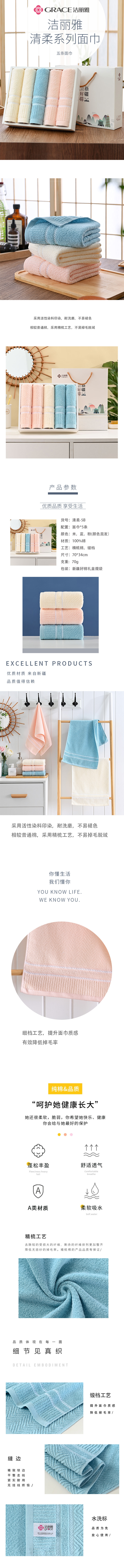 洁丽雅(GRACE)面巾礼盒 5条面巾 清柔-5B(单位:盒) 多色