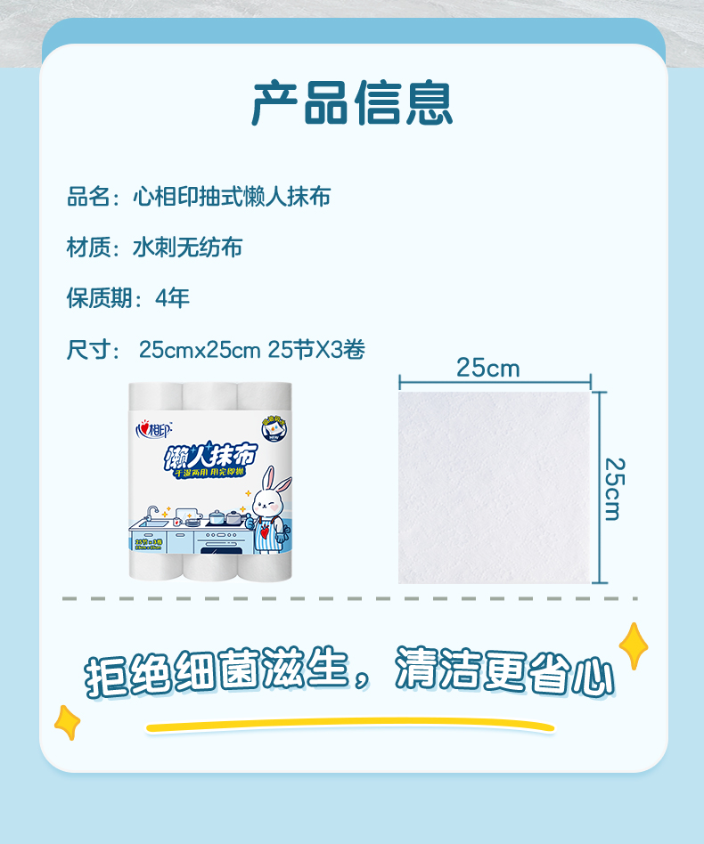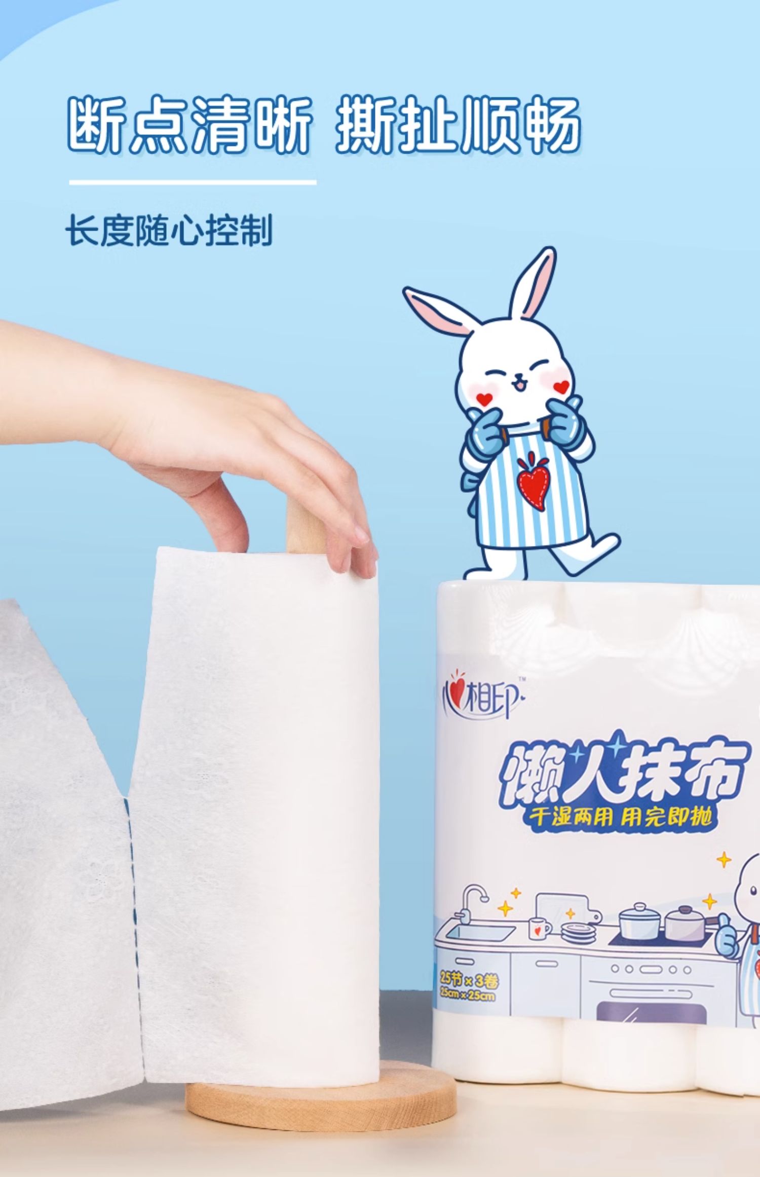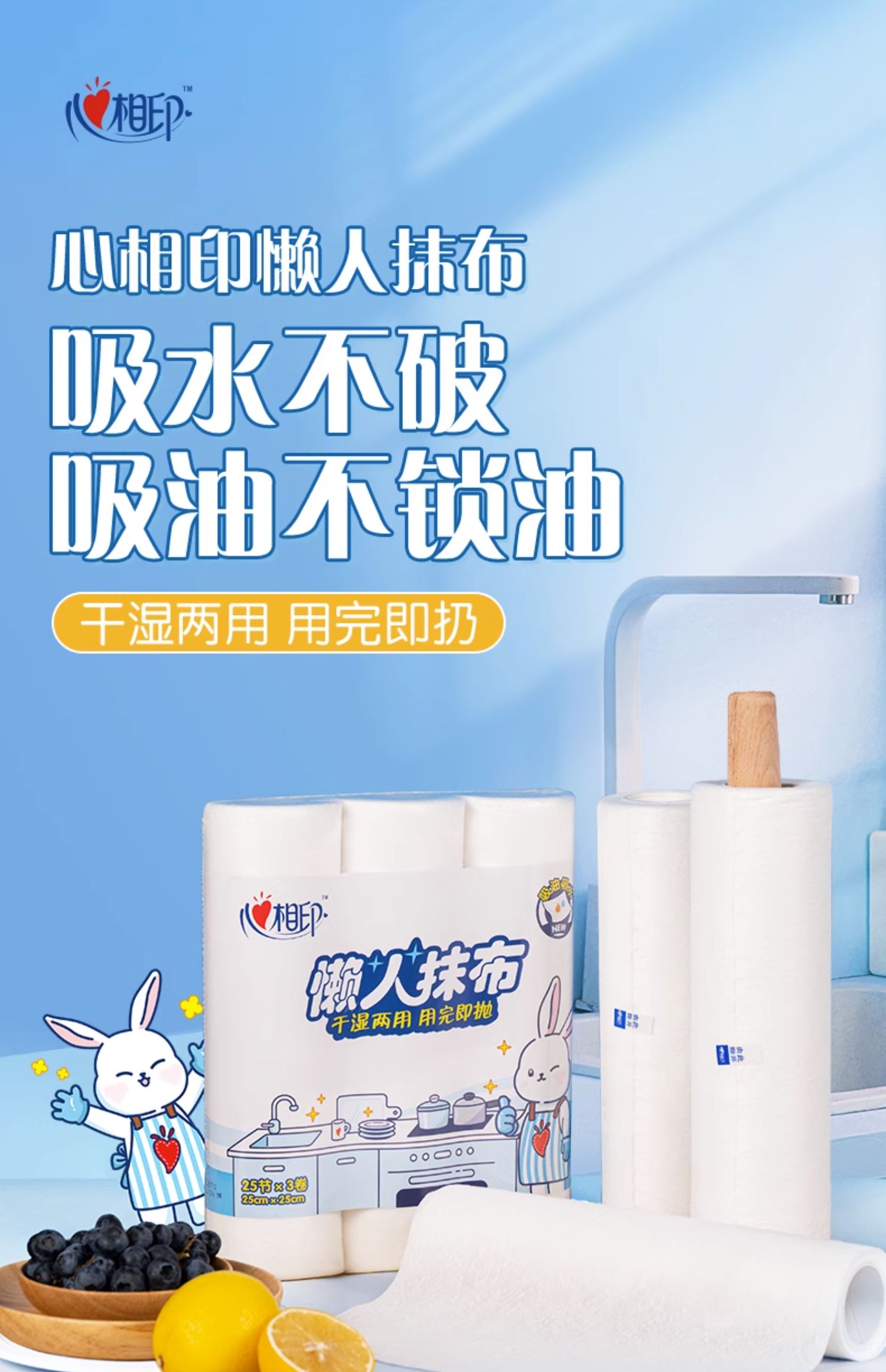 心相印(Mind Act Upon Mind) JXF075 单包:25张*3卷 卷式懒人抹布单包 白色(单位:包)