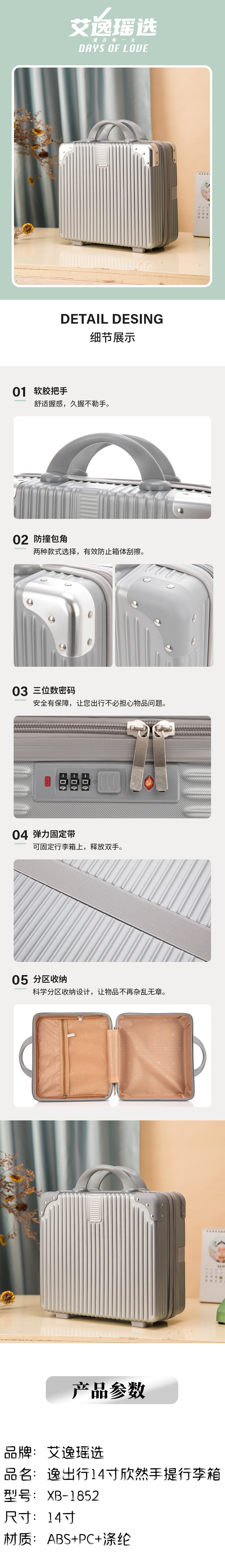 艾逸瑶选/逸出行14寸欣然手提行李XB-1852(单位:个) 银色